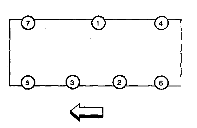4. Tighten the valve rocker arm cover bolts in sequence using two passes.