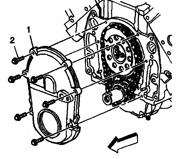 10. Remove the engine front cover (1).
