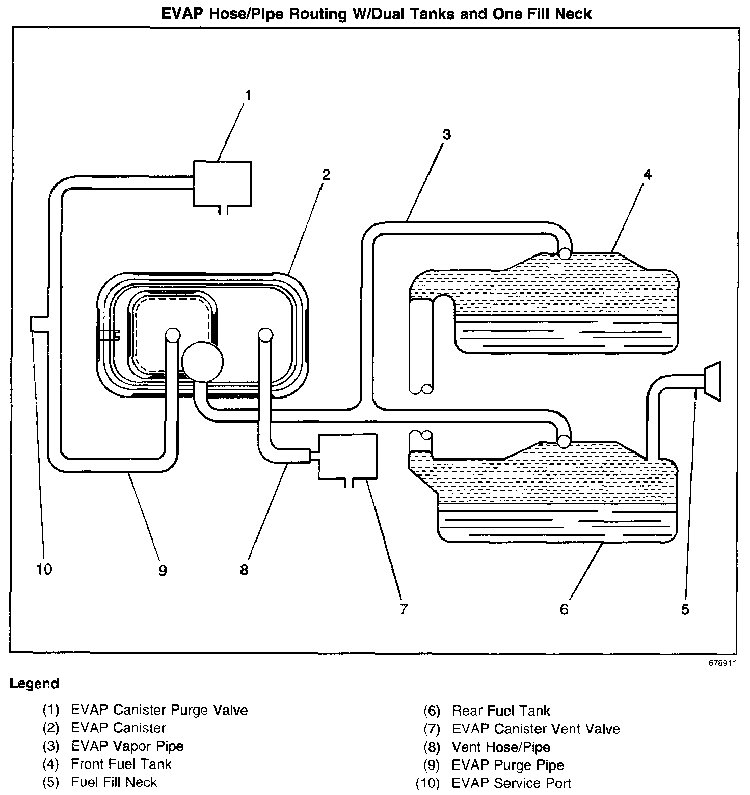 EVAP Hose/Pipe Routing W/Dual Tanks And One Fill Neck:
