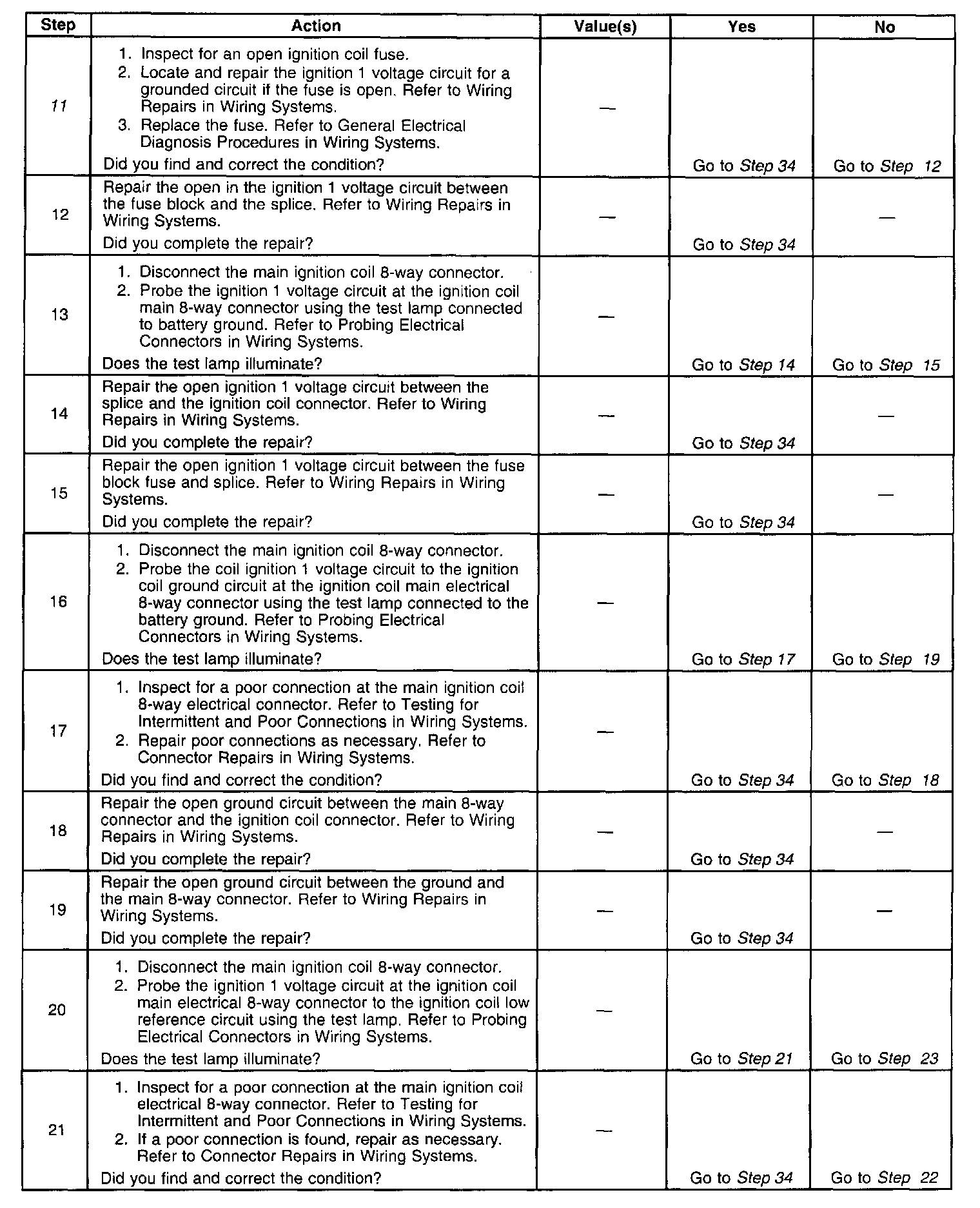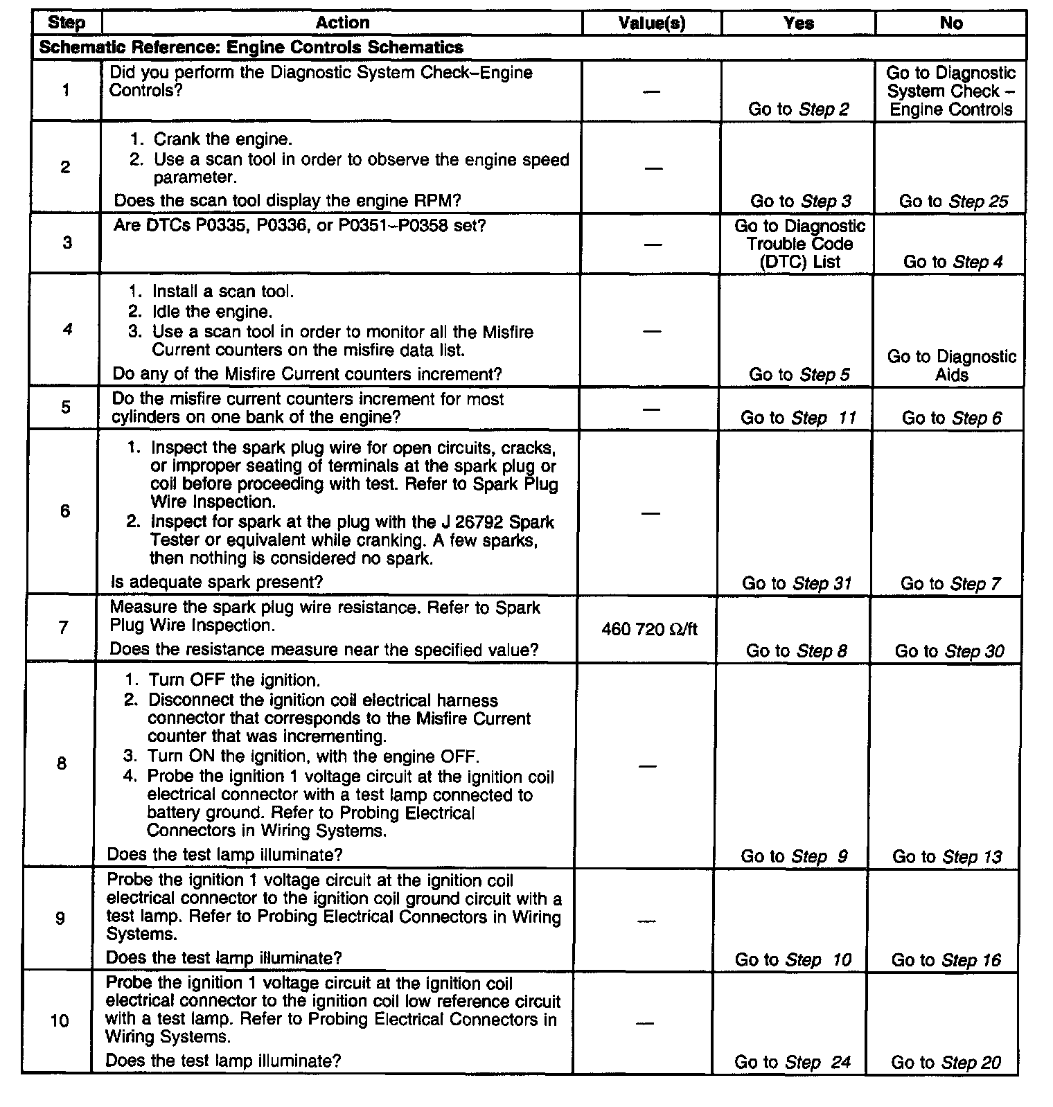 11. A good indication that the fuse is open is all of the misfire current counters are incrementing on one side of the engine. Inspect the ignition positive voltage circuit for a grounded circuit. If the fuse is open and the ignition coil circuits are OK, inspect the injector circuits for being grounded.
