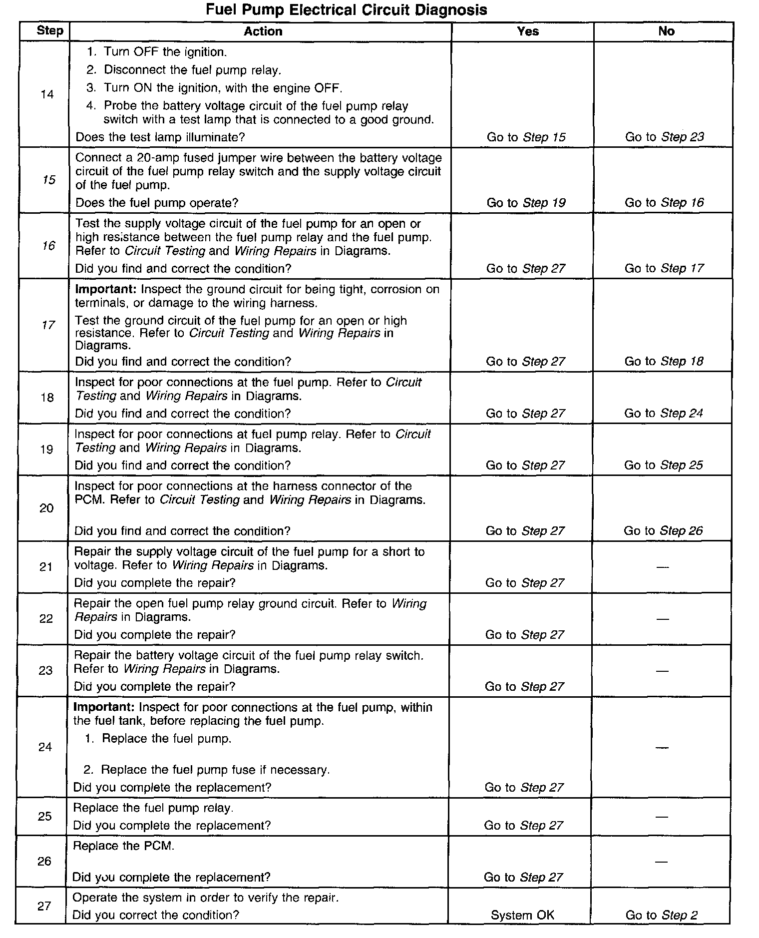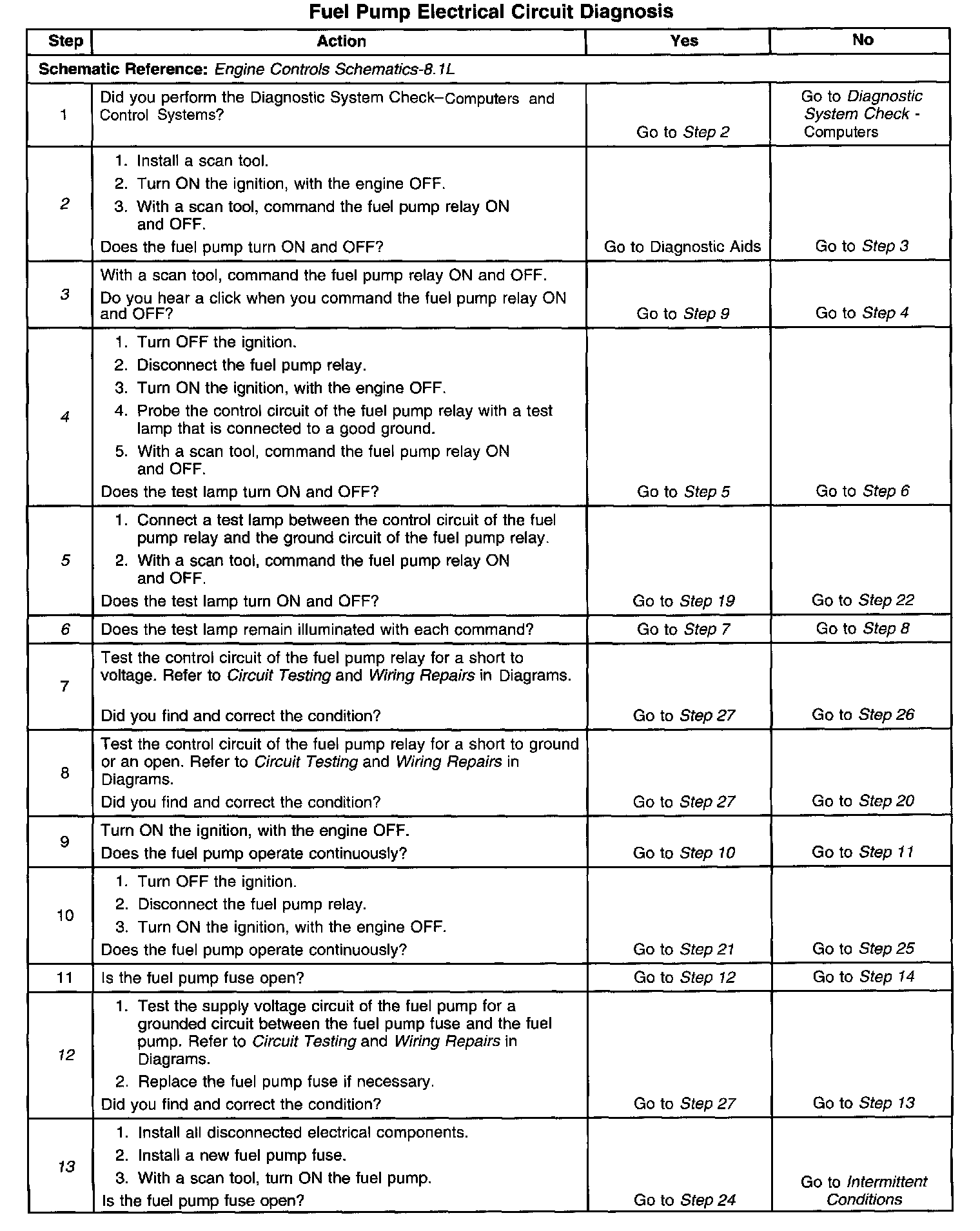 Fuel Pump Electrical Circuit Diagnosis