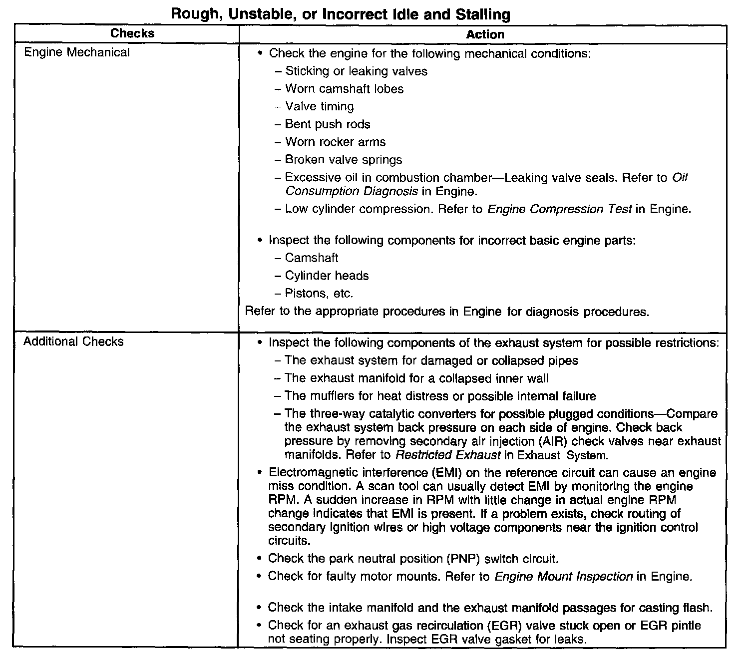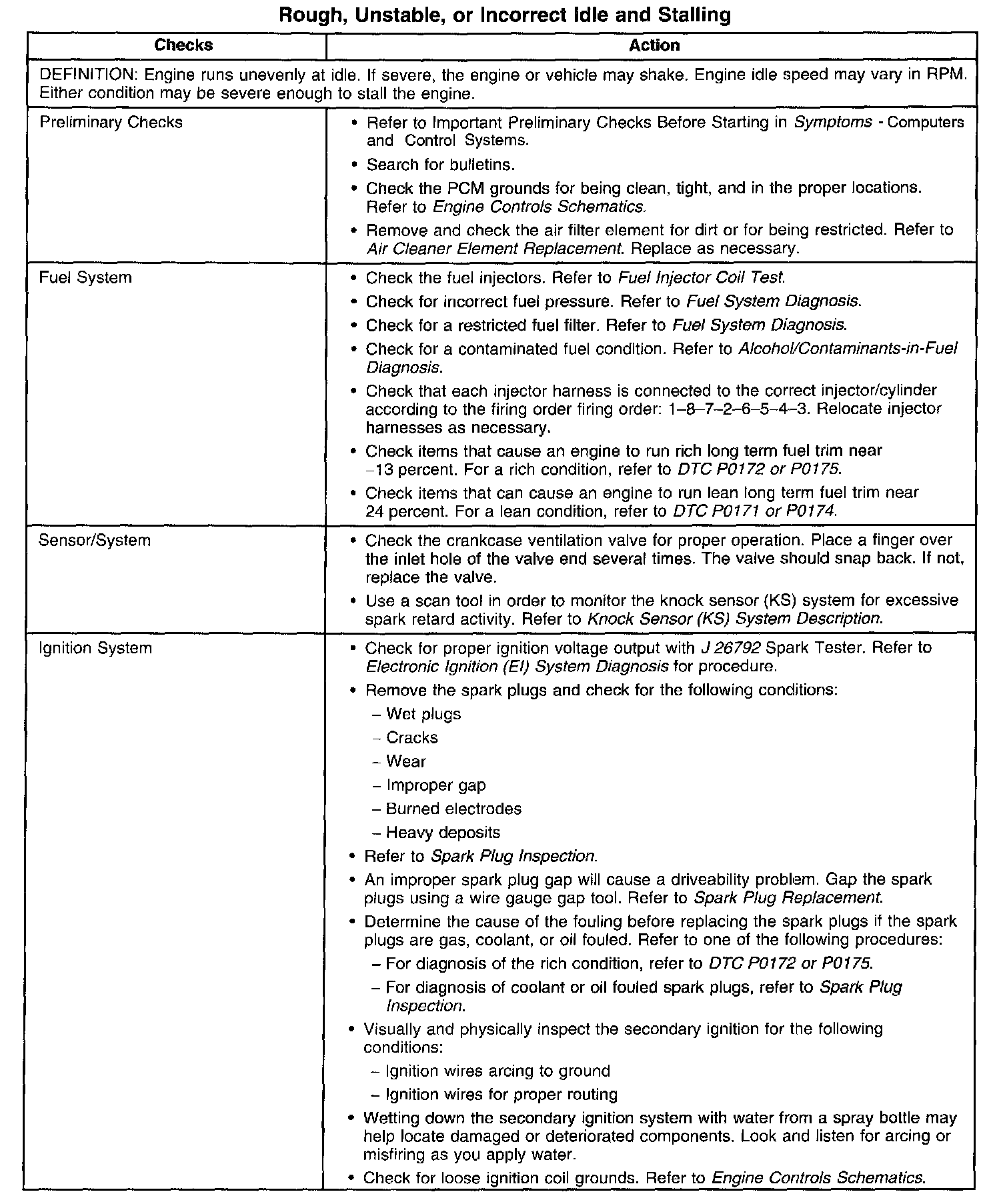 Rough, Unstable, or Incorrect Idle and Stalling