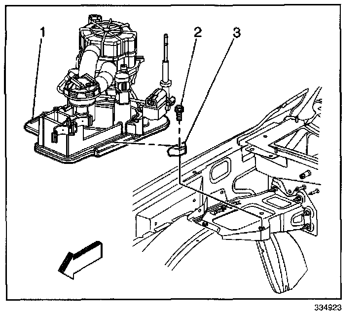 3. Install the AIR pump assembly (1) into the vehicle.