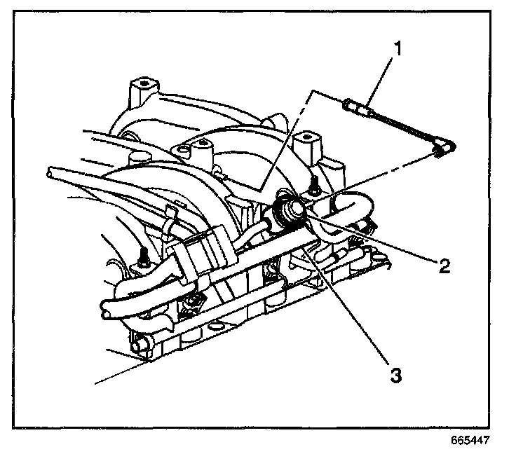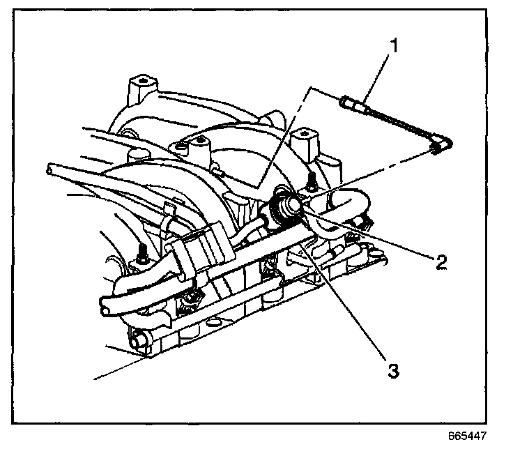 2. Disconnect the fuel pressure regulator vacuum line (1).