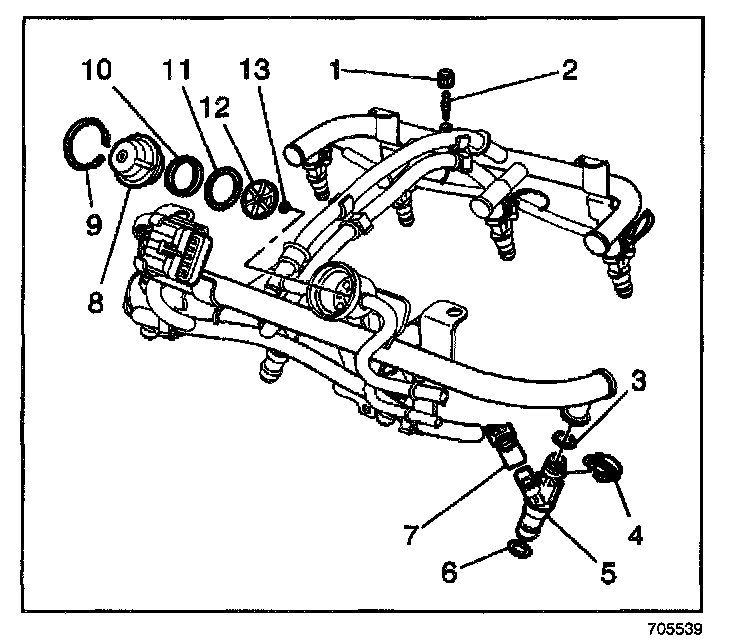4. Install the new small O-ring (13) on the fuel pressure regulator.