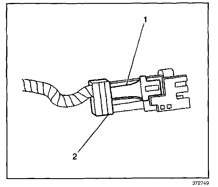 11. Pull the top portion (2) of the injector connector up. Do not pull the top portion of the connector past the top of the white portion (1).