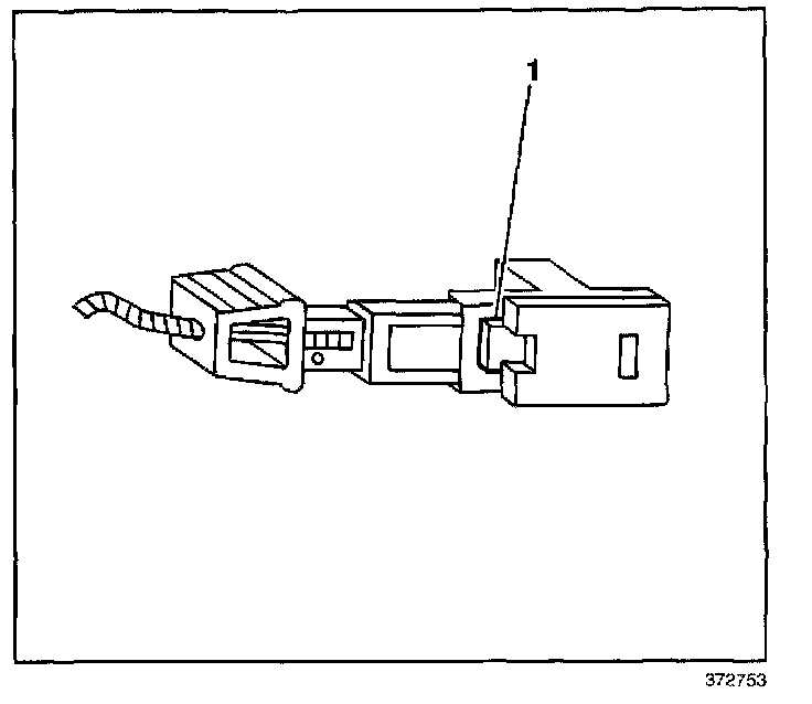 12. Push the tab (1) on the lower side of the injector connector in order to release the connector from the injector.
