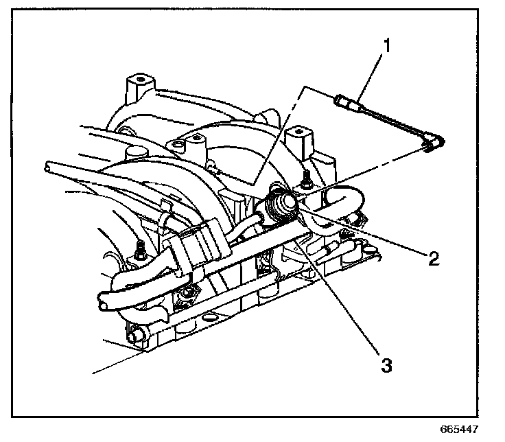 15. Disconnect the fuel pressure regulator vacuum line (1).