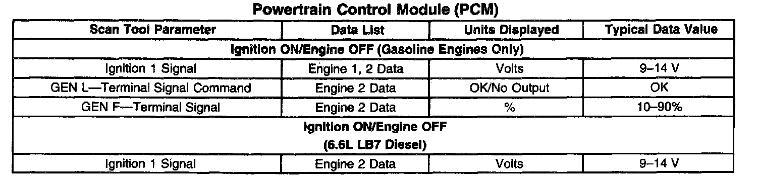 Scan Tool Data List - Powertrain Control Module (PCM)