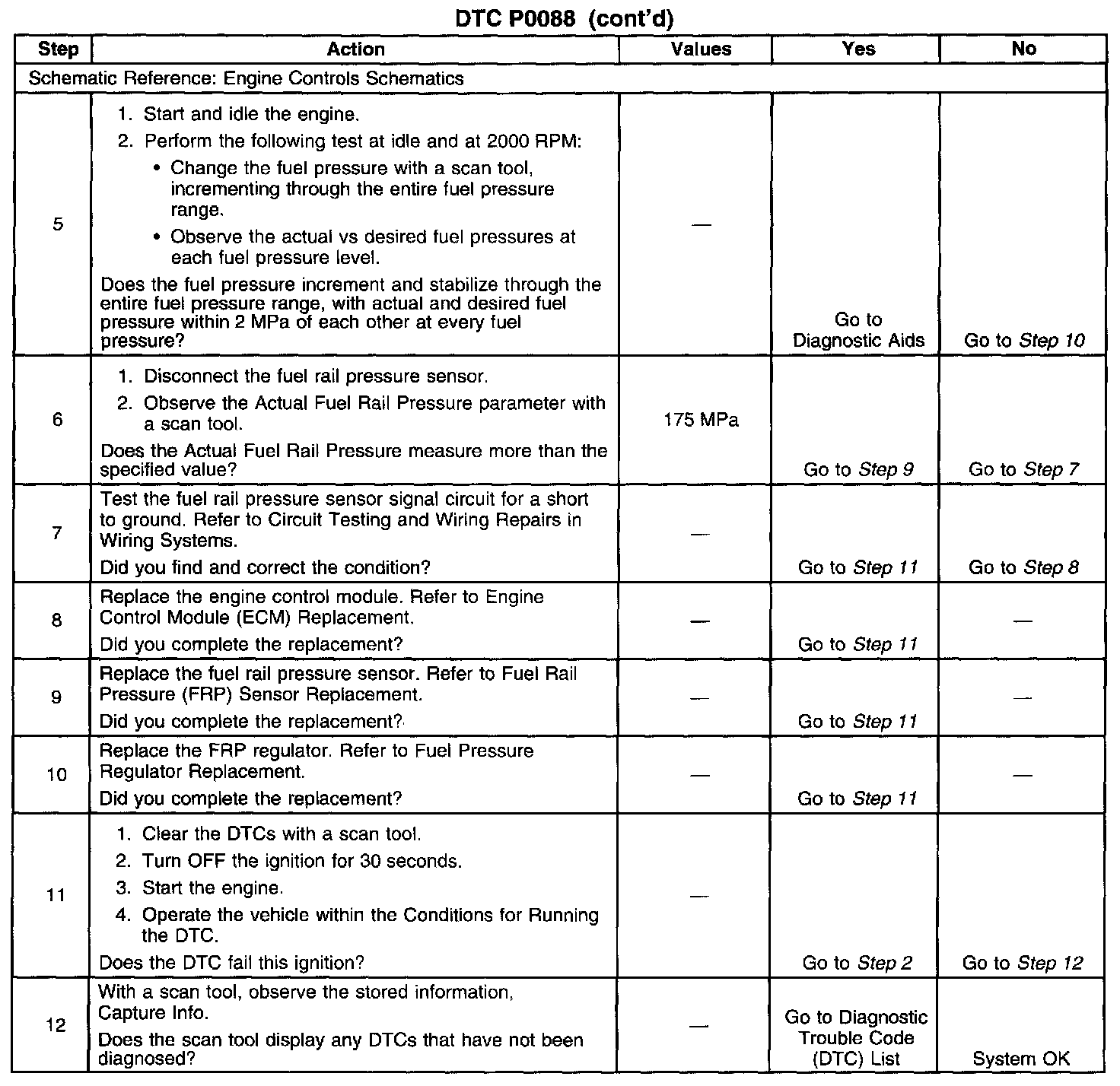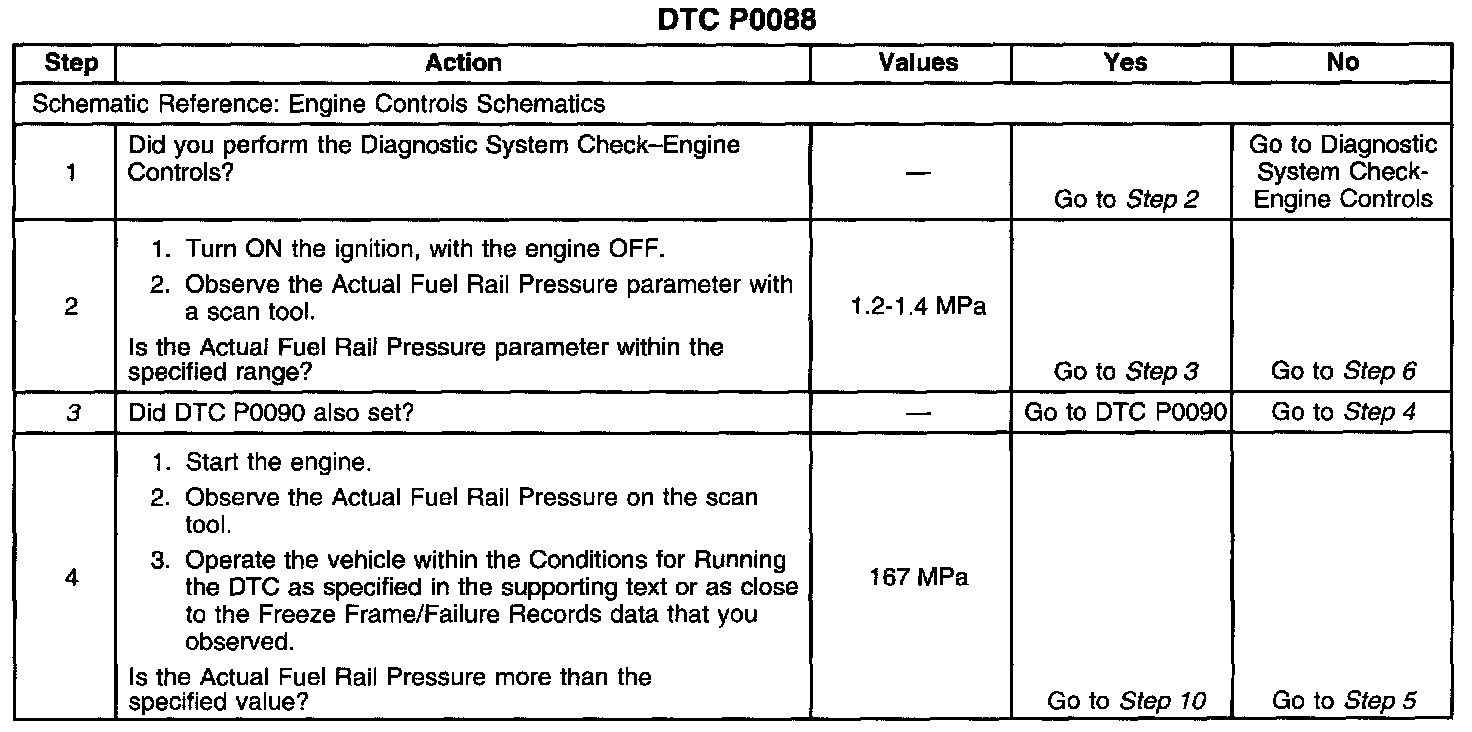 This bulletin is being issued to revise the DTC P0088 table in the Engine Controls-6.6L sub-section of the Service Manual. Please replace the current information in the Service Manual with the following information.