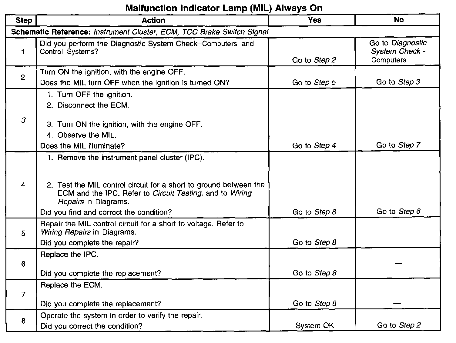 3. The step determines if the condition is with the MIL control circuit or the ECM.