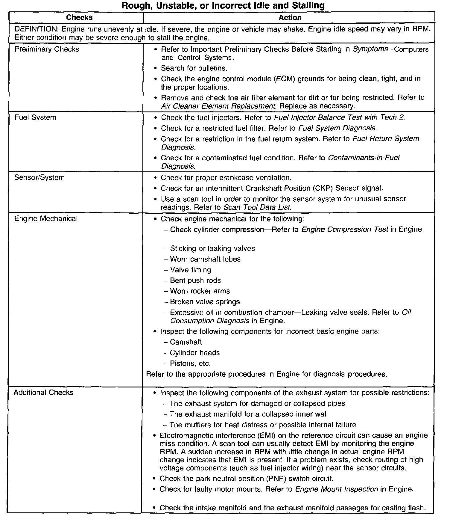 Rough, Unstable, or Incorrect Idle and Stalling