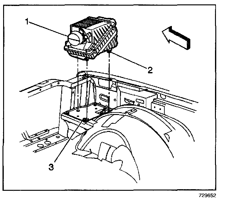2. Install the air cleaner assembly until the air cleaner is seated fully on the mounts and is up against the fender apron.