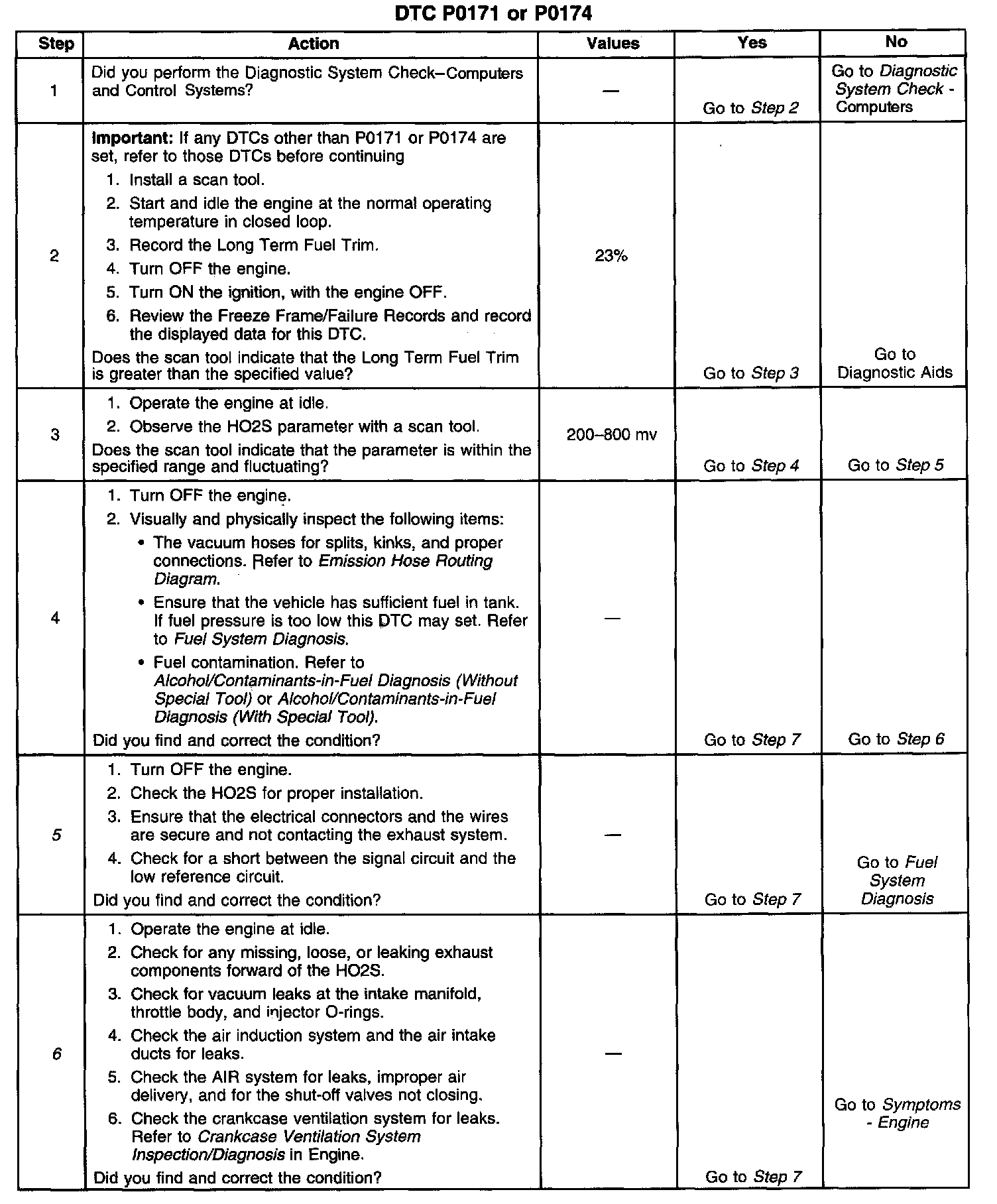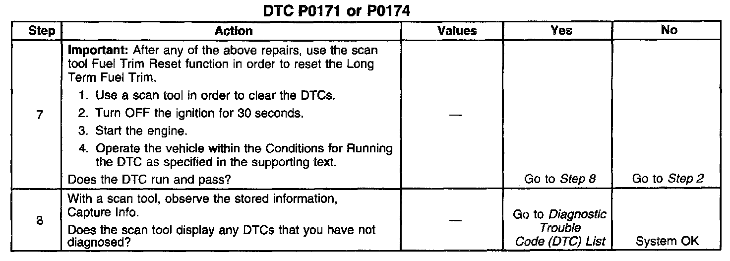 CIRCUIT DESCRIPTIONThe Powertrain Control Module (PCM) controls the air/fuel metering system in order to provide the best possible combination of driveability, fuel economy, and emission control. Fuel delivery is controlled differently during open and closed loop. During open loop, the PCM determines fuel delivery based on sensor signals without oxygen sensor input. During closed loop, the oxygen sensor inputs are added and used by the PCM to calculate short and long term fuel trim fuel delivery adjustments. If the oxygen sensors indicate a lean condition, fuel trim values will be above 0 percent. If the oxygen sensors indicate a rich condition, fuel trim values will be below 0 percent. Short term fuel trim values change rapidly in response to the Heated Oxygen Sensor (HO2S) voltage signals. Long term fuel trim makes coarse adjustments in order to maintain an air/fuel ratio of 14.7:1. If the PCM detects an excessively lean condition, this DTC will set.