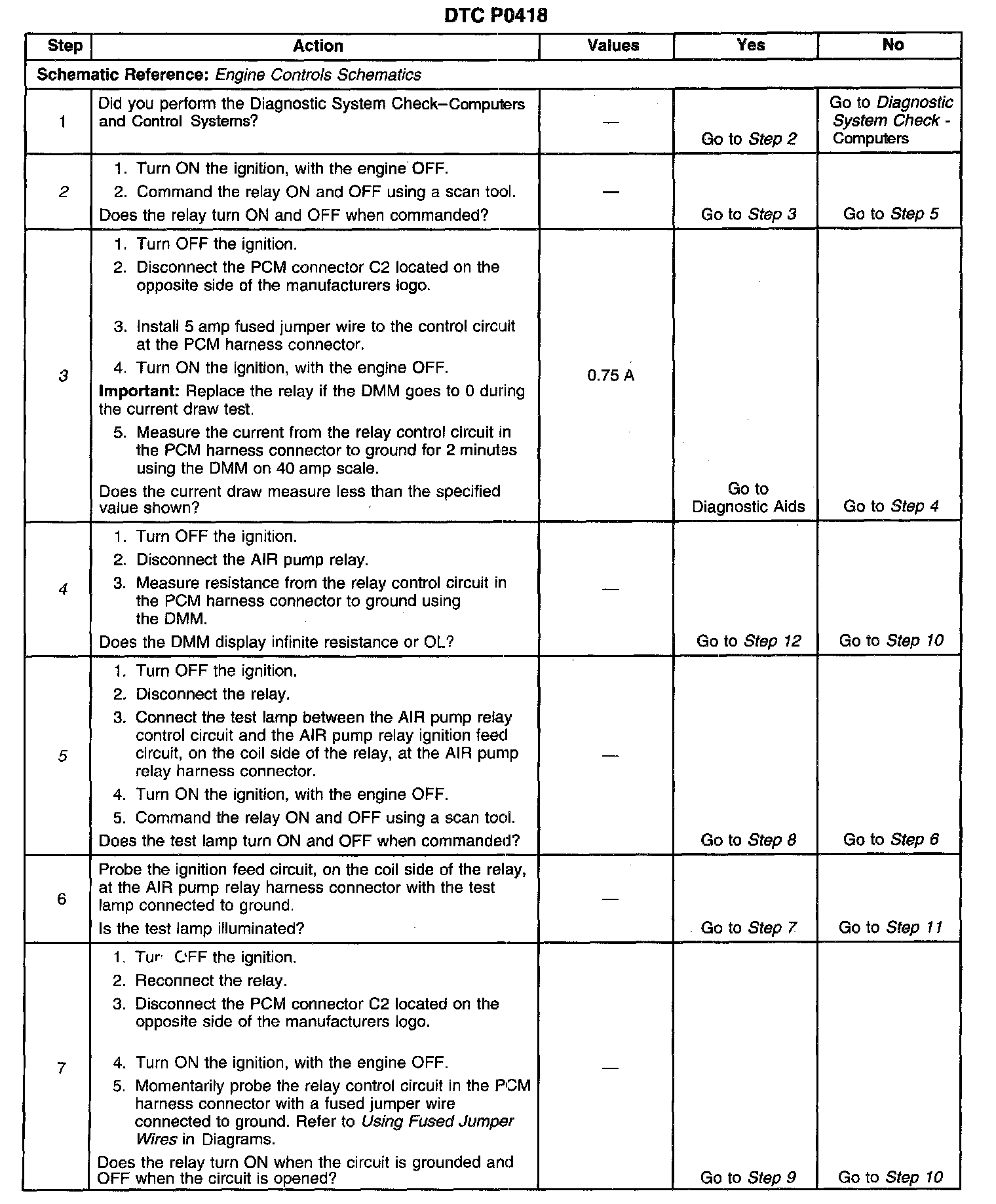 13. If no trouble is found in the control circuit or the connection at the PCM, the PCM may be faulty. However, this is an extremely unlikely failure.