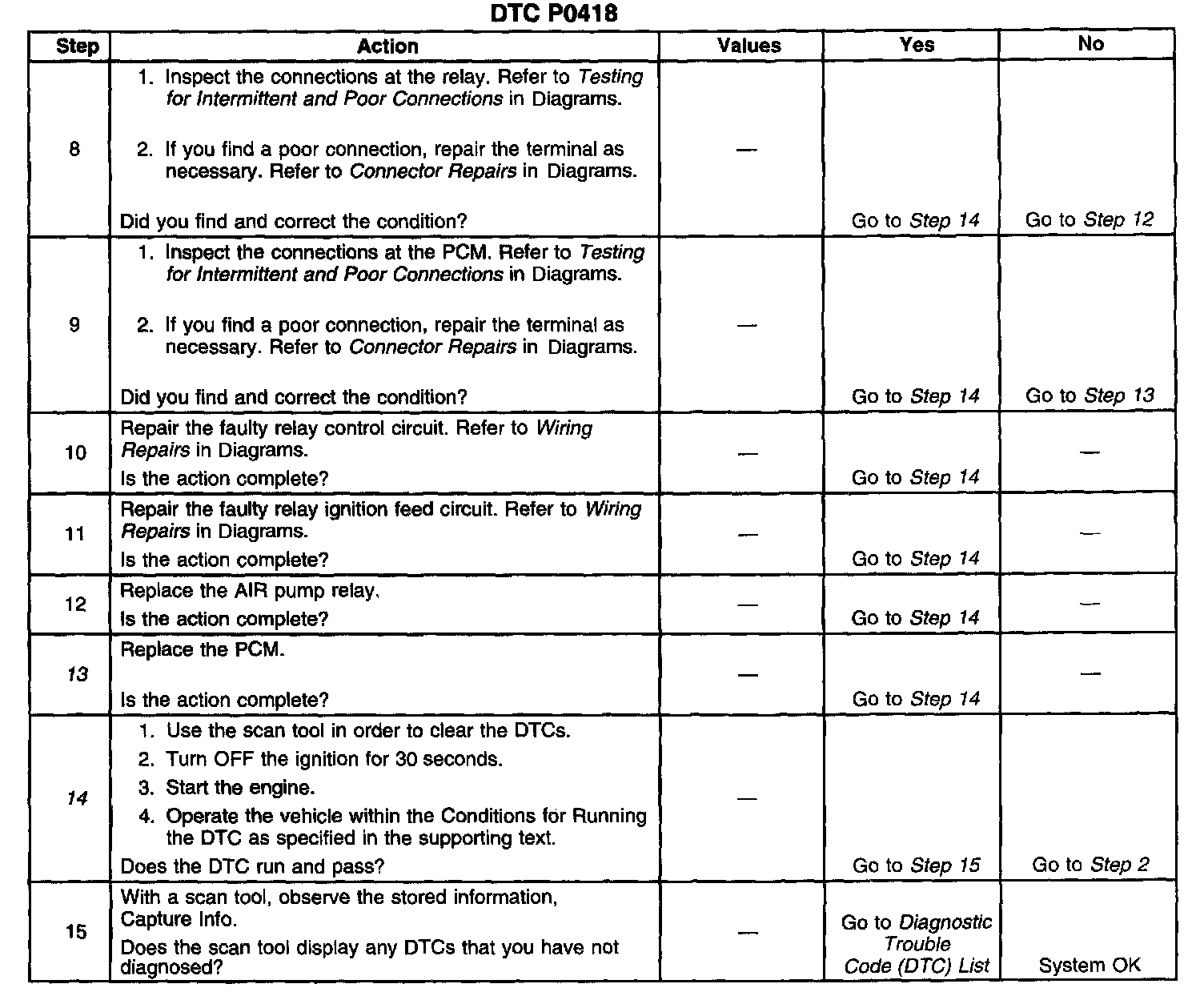 14. The repair is not complete if the scan tool indicates that the diagnostic ran and failed.