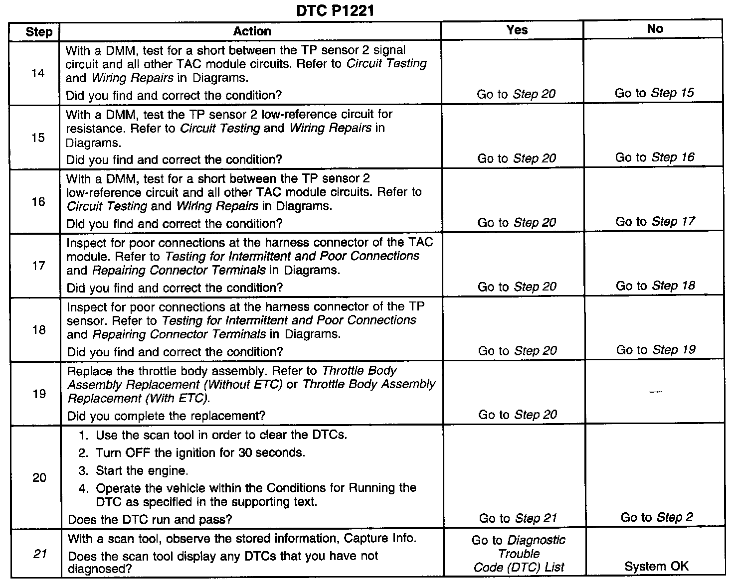 21. When the TAC module detects a condition within the TAC system, more than 1 TAC system related DTC may set. This is due to the many redundant tests run continuously on this system. Locating and repairing 1 individual condition may correct more than 1 DTC. Disconnecting components during testing may set additional DTCs. Remember this if you review the stored information in Capture Info.