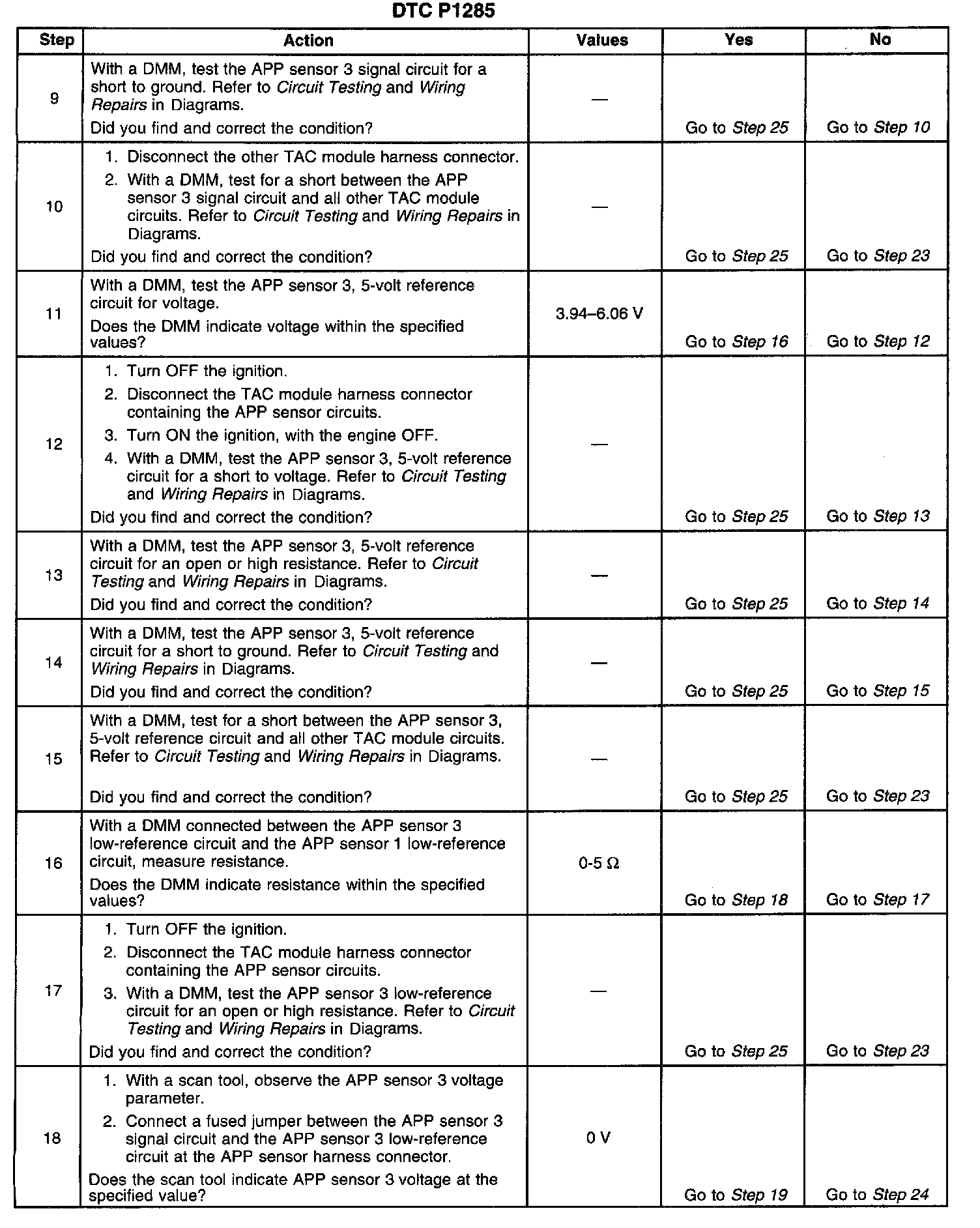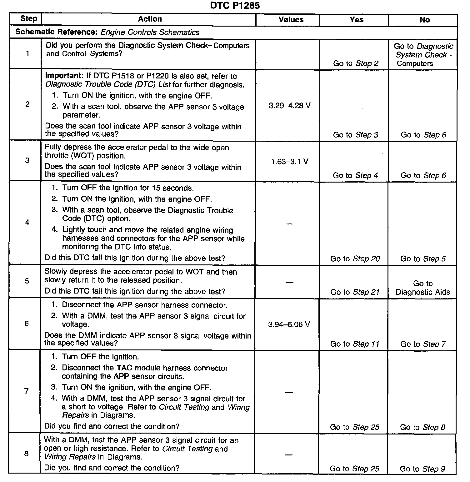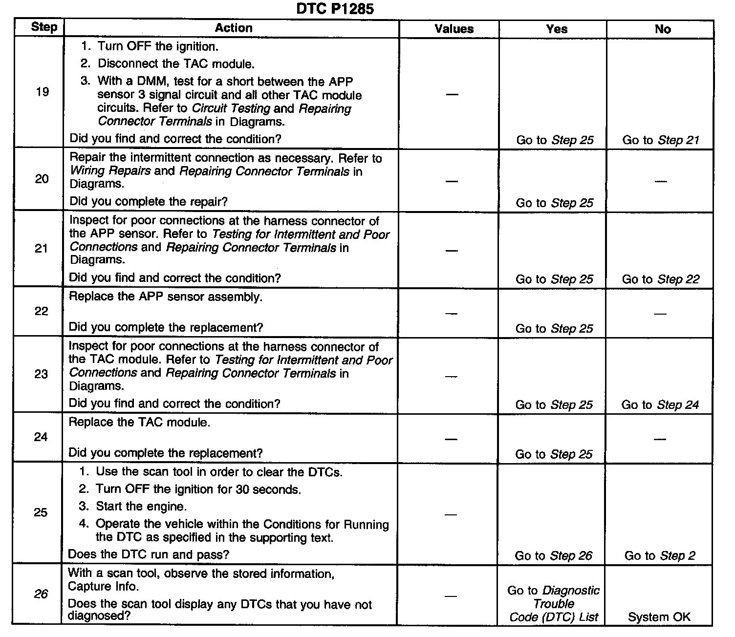 ^ For an intermittent, Refer to Intermittent Conditions. Intermittent Conditions