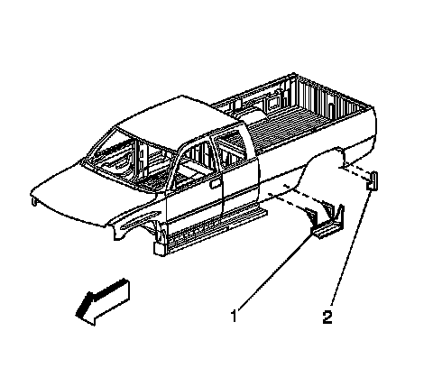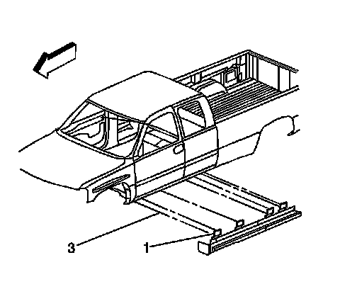 4. With an assistant remove the retainers (3) from where the vertical mounting brackets (1) attached to the inner rocker panel.