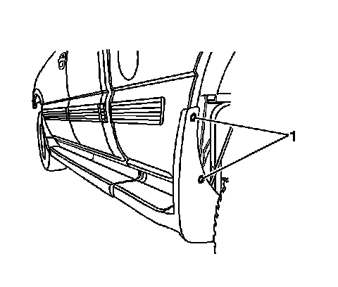 6. Remove the retainers (1) from the rear assist step splash guard.