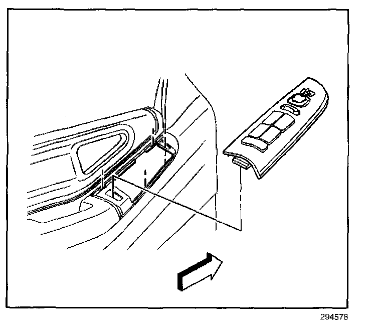 REMOVAL PROCEDURE1. Insert a flat-bladed tool into the slots on the power accessory switch panel in order to release the retainer clips.