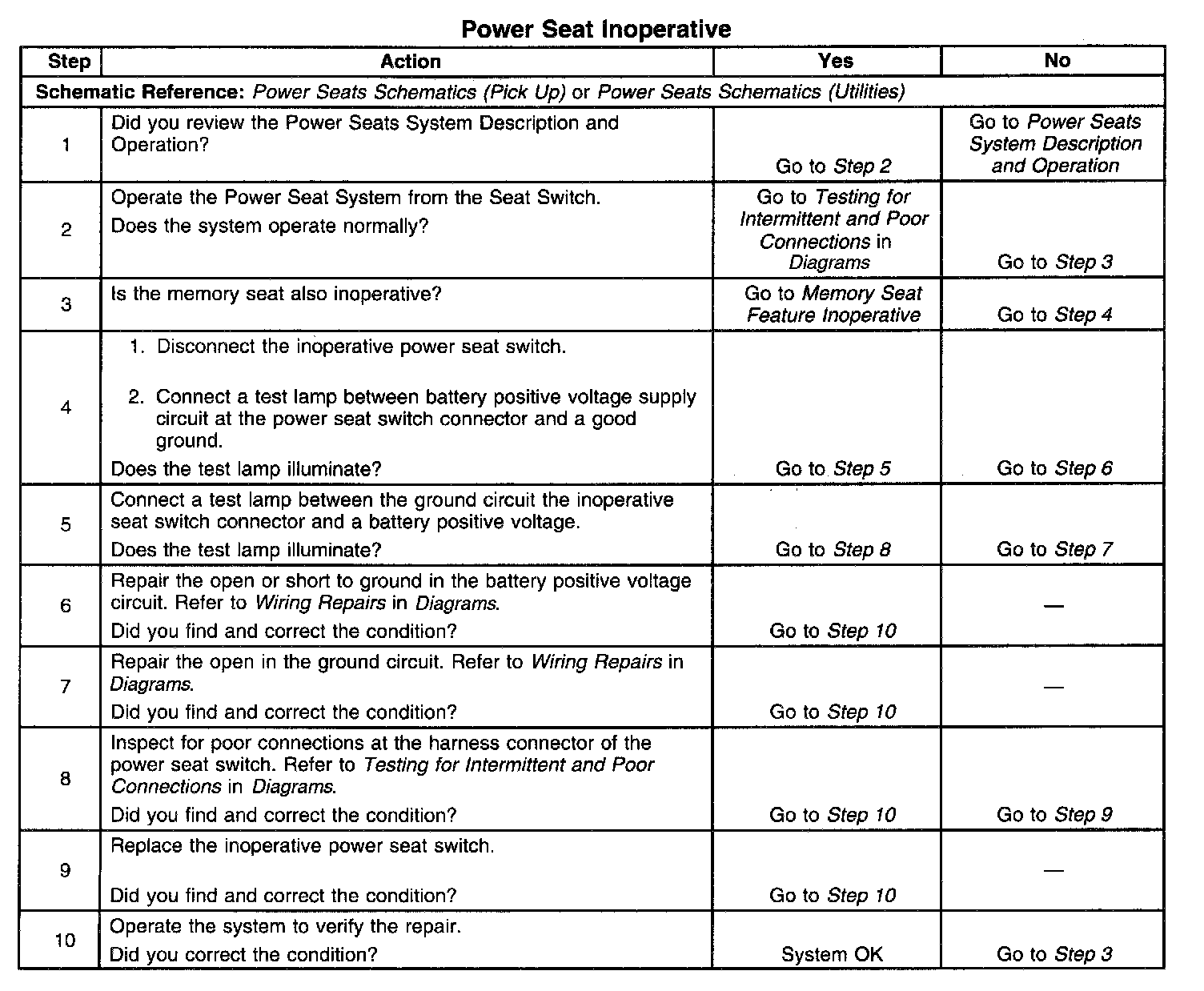 Power Seat Inoperative