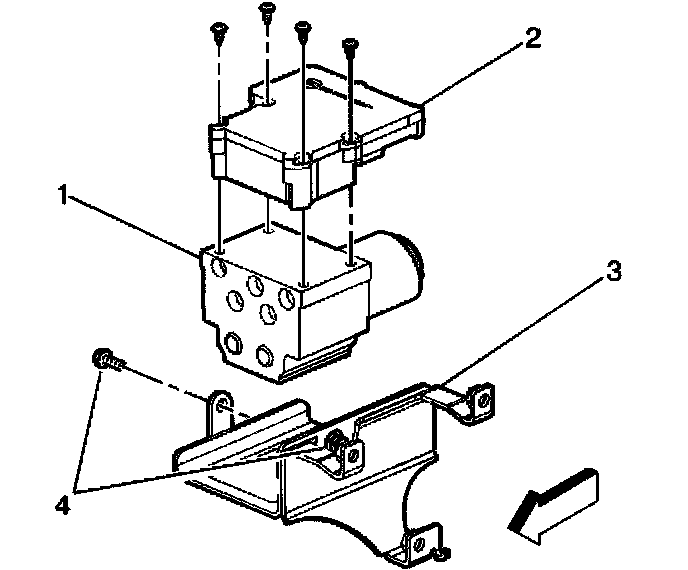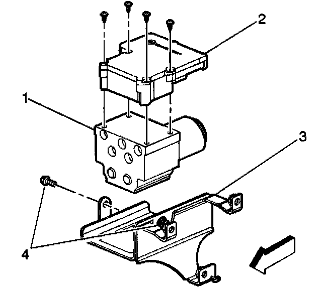 7. Remove the bolts (4) securing the BPMV mounting bracket (3) to the BPMV (1).