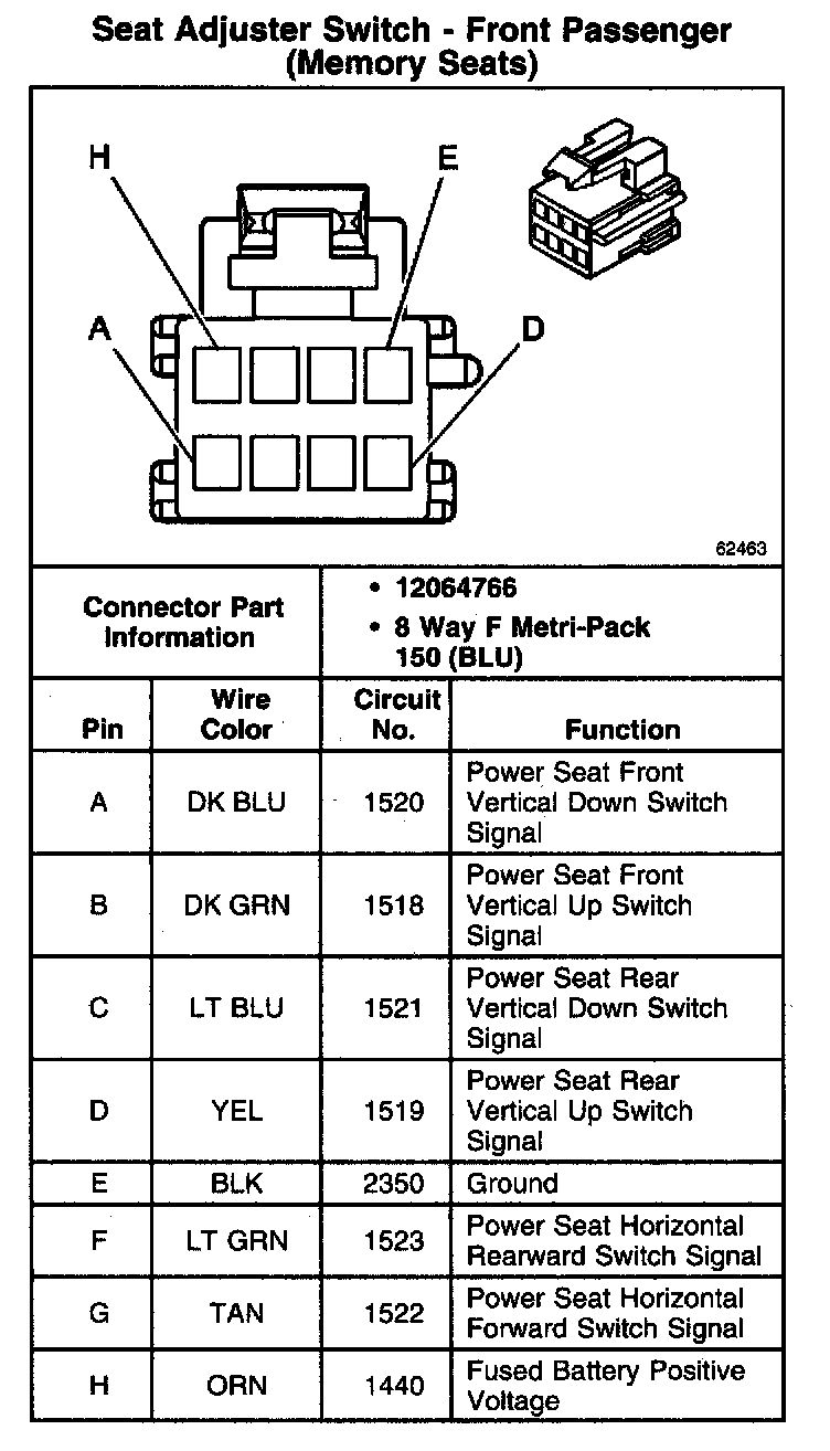 Seat Adjuster Switch - Front Passenger (Memory Seats):