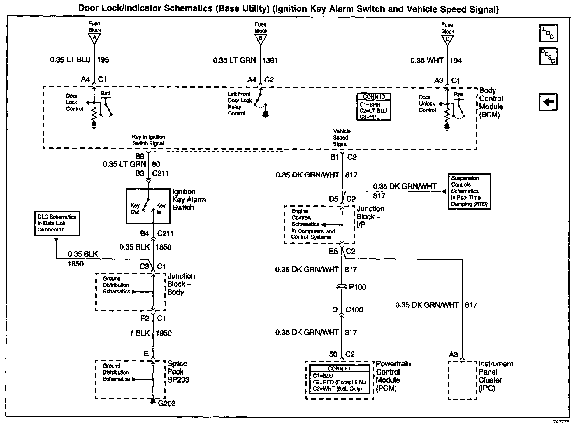 Door Lock/Indicator Schematics: Base Utility (Ignition Key Alarm Switch and Vehicle Speed Signal):