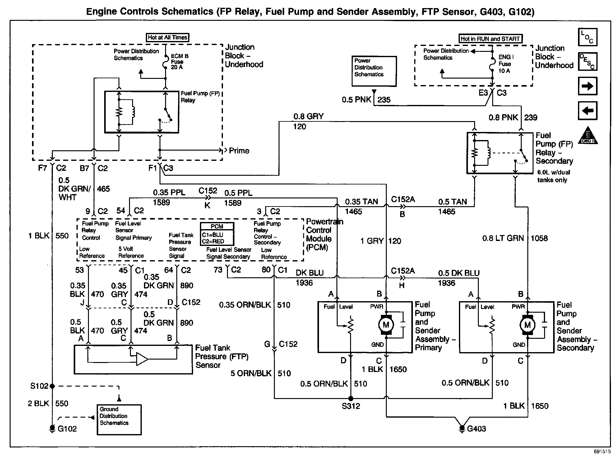 Fuel Pump Relay, Fuel Pump/Sender, FTP Sensor, G403, G102