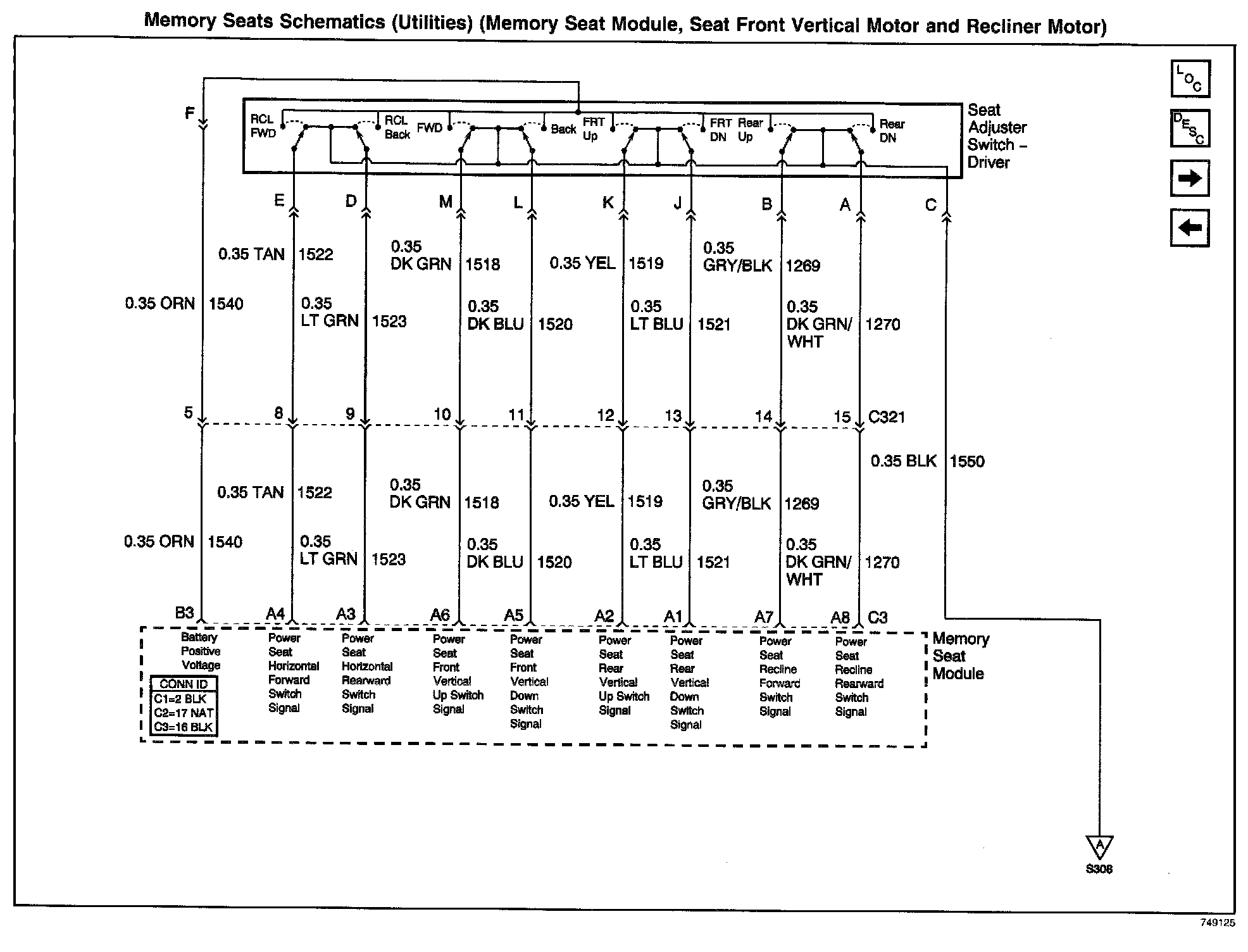 Memory Seats Schematics: Utilities (Memory Seat Module, Seat Front Vertical Motor and Recliner Motor):