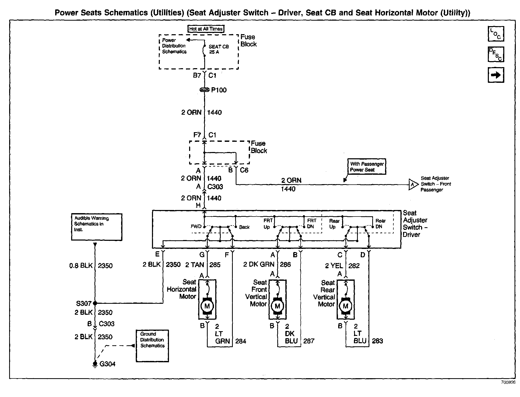 Power Seats Schematics: Utilities (Seat Adjuster Switch - Front Passenger, Seat Front Vertical Motor and Seat Rear Vertical Motor (Utility)):