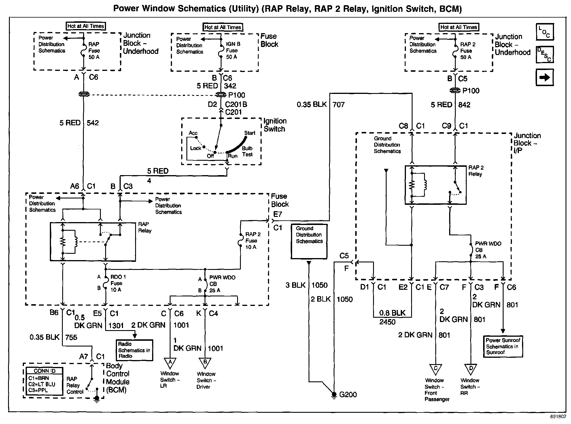 Power Window Schematics: Utility (RAP Relay, RAP 2 Relay, Ignition Switch, BCM):