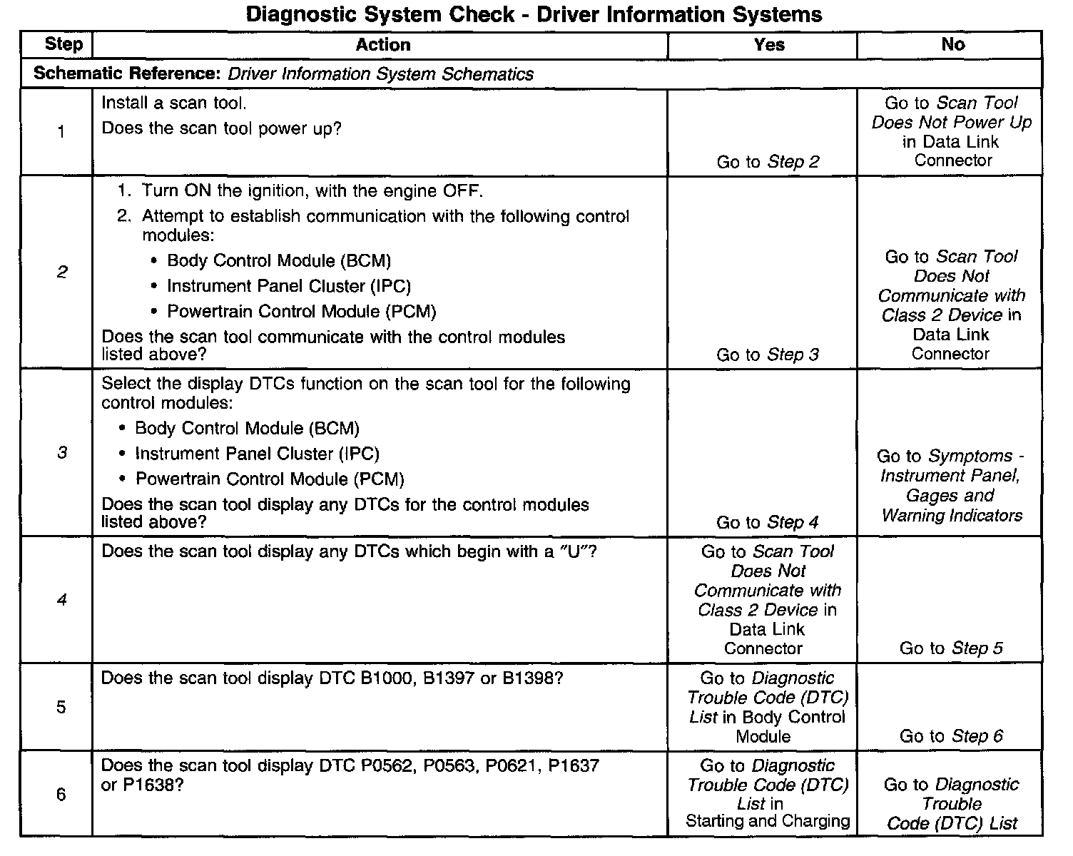 2. Lack of communication may be due to a partial malfunction of the class 2 serial data circuit or due to a total malfunction of the class 2 serial data circuit. The specified procedure will determine the particular condition.