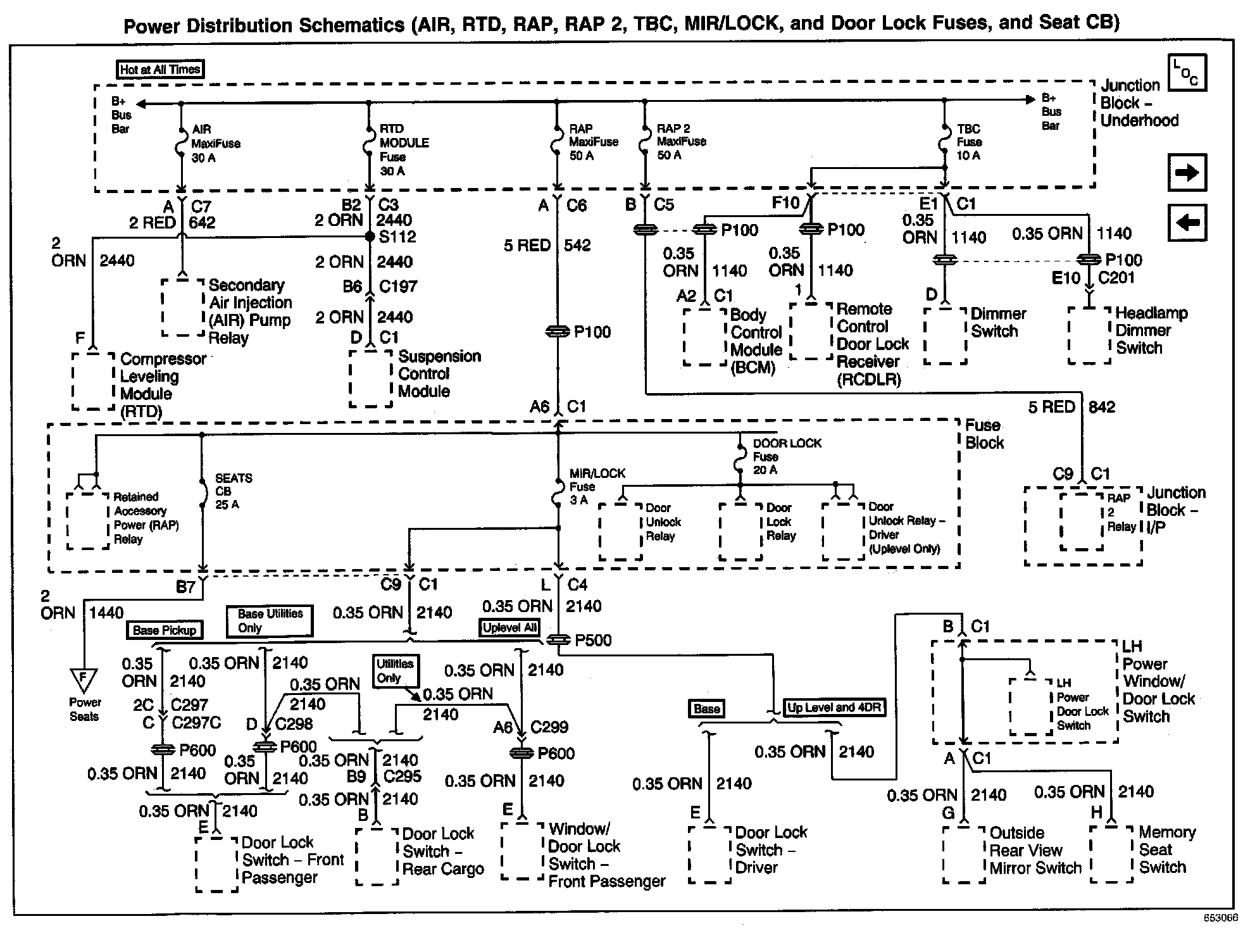 Power Distribution Schematics: AIR, RTD, RAP, RAP 2, TBC, MIR/LOCK, And Door Lock Fuses, And Seat CB: