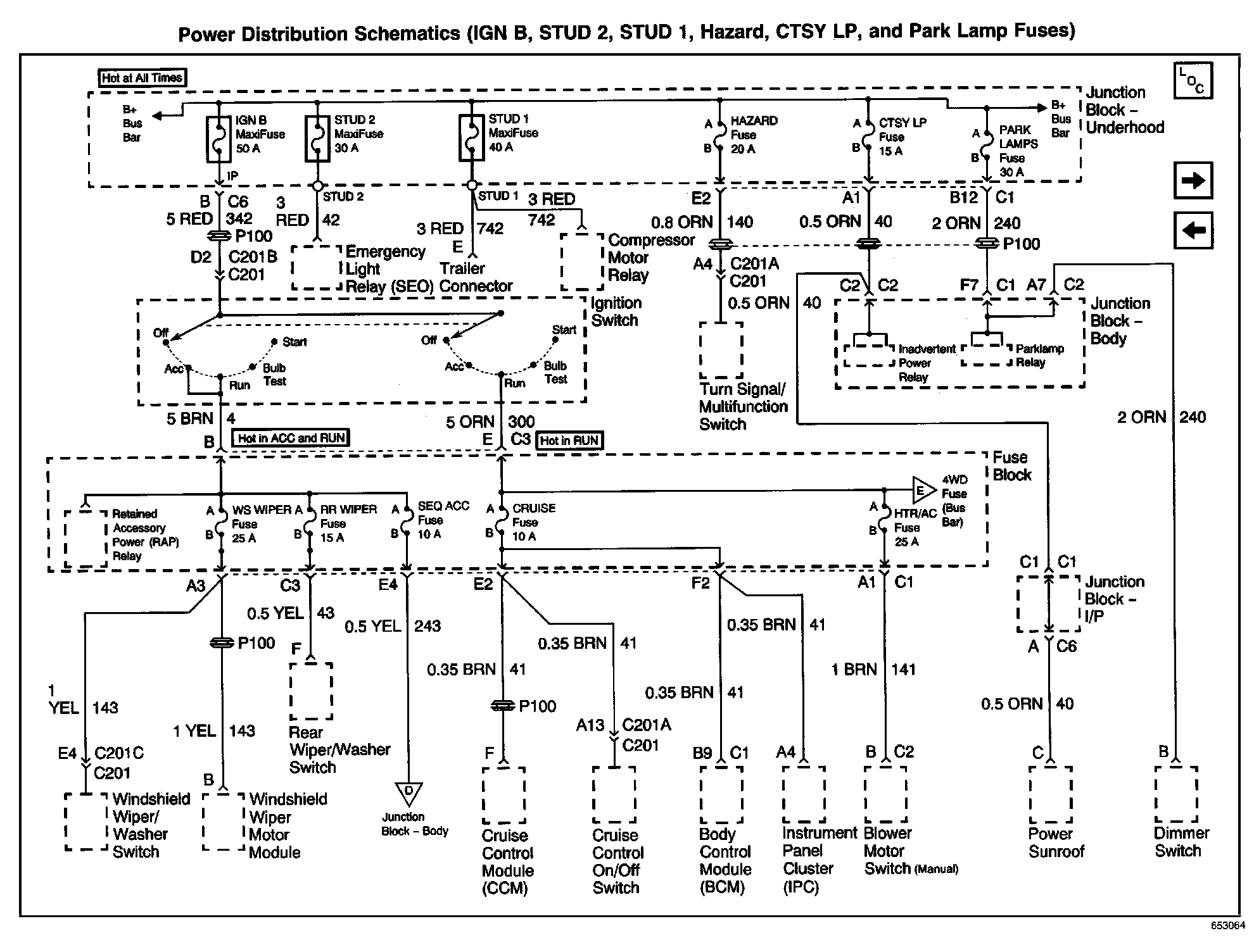 Power Distribution Schematics: IGN B, STUD 2, STUD 1, Hazard, CTSY LP, And Park Lamp Fuses: