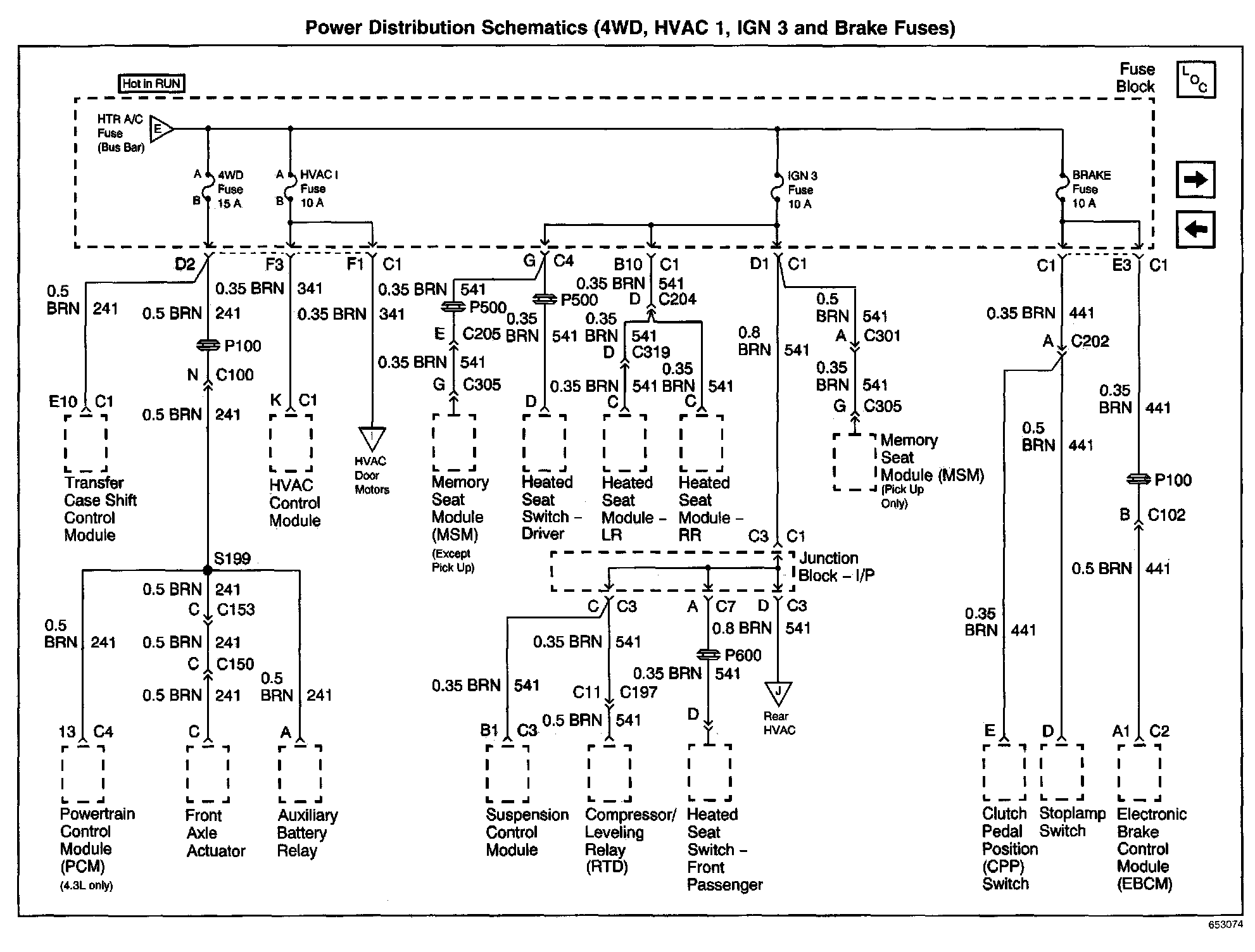 Power Distribution Schematics: 4WD, HVAC 1, IGN 3 And Brake Fuses: