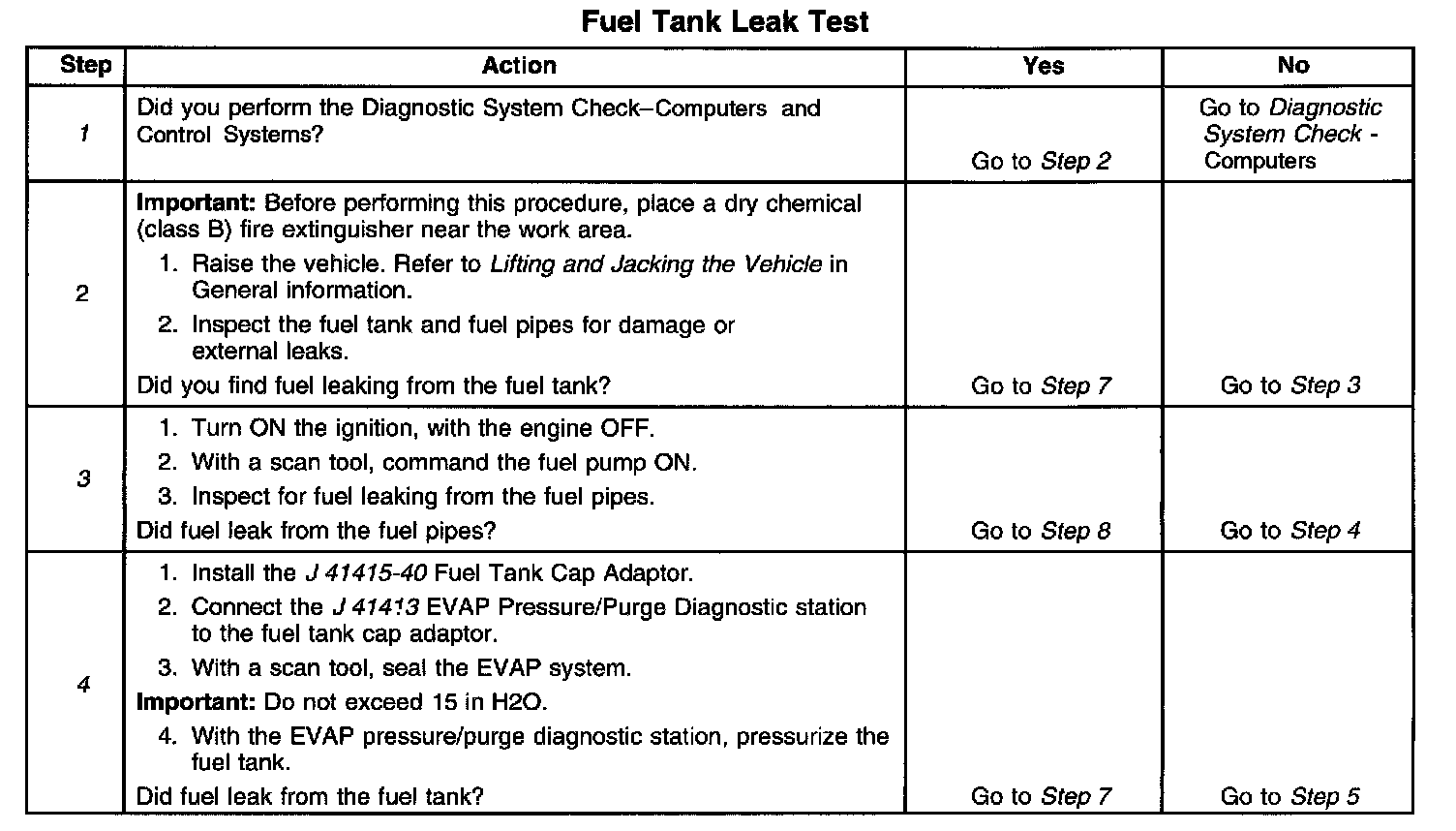 FUEL TANK LEAK TESTDESCRIPTION