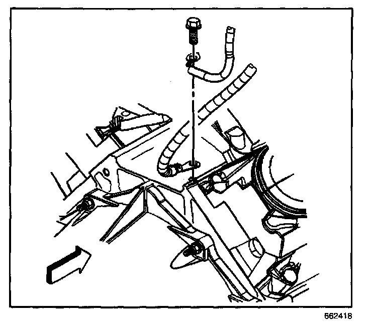 4. Remove the engine wiring harness/auxiliary negative battery cable bolt.