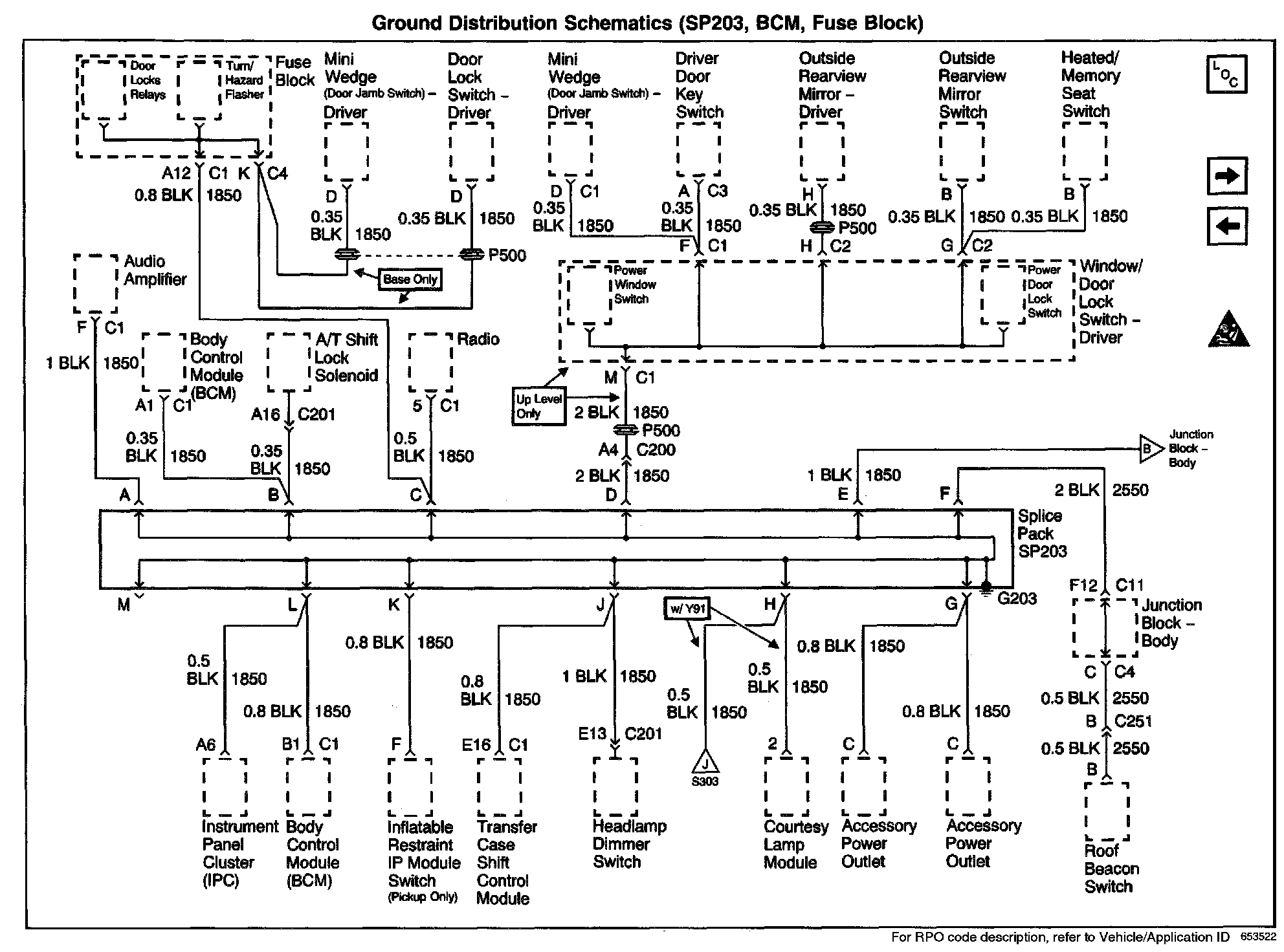Ground Distribution Schematics: SP203, BCM, Fuse Block:
