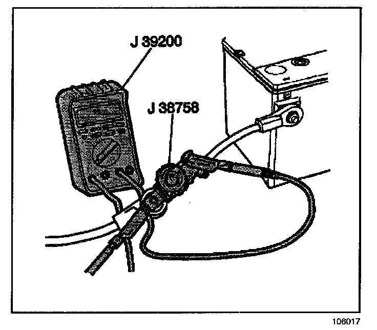 IMPORTANT: From this point on, electrical continuity must be maintained in the ground circuit of the battery through the J 38758 in the ON position or through the J 39200.