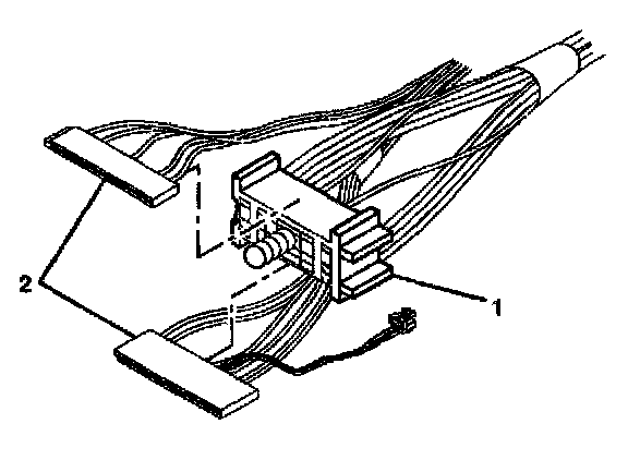 6. Disconnect the gray and black connectors (2) of the switch from the column bulkhead connector.