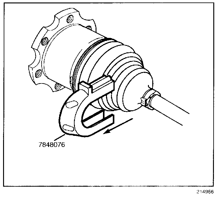 7. Install the spacer ring (1) in the groove at the end of the halfshaft bar (2).