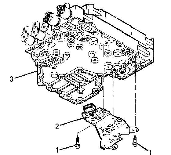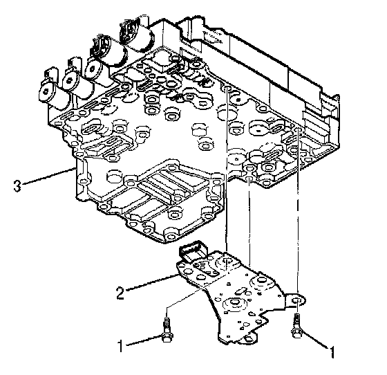 1. Place the new pressure switch manifold assembly (2) in position and install one bolt (1) in a recessed location to hold it into position. Start the remaining four bolts(l) in recessed locations and tighten the bolts by hand.