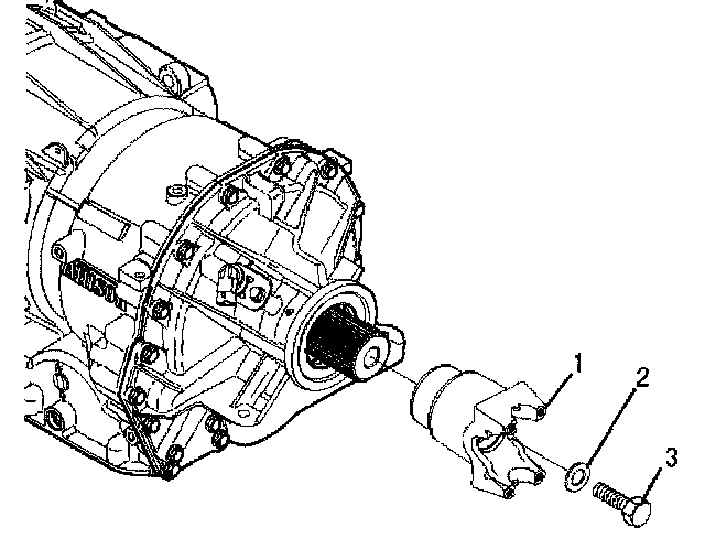 2. Install the yoke assembly (1) onto the transmission output shaft.