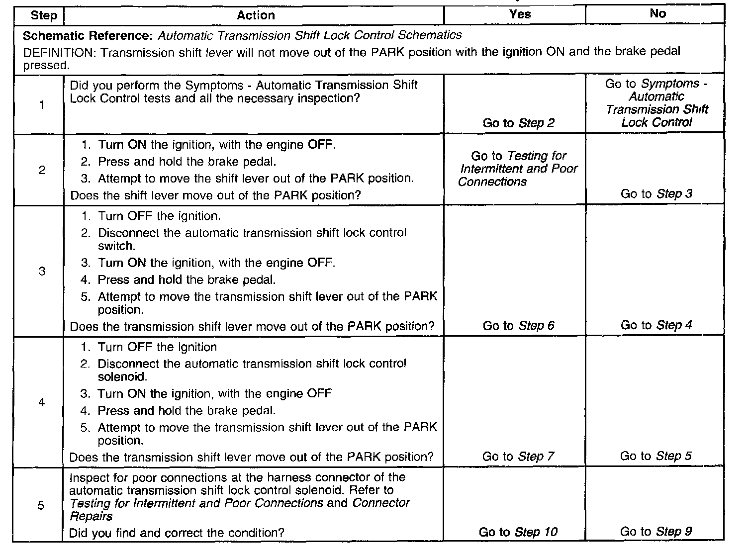 Shift Lever Does Not Move With Brake Pedal Depressed