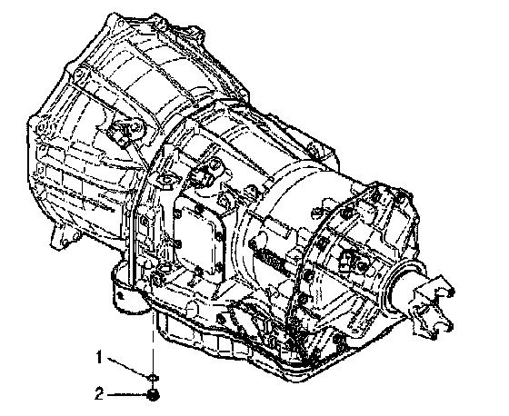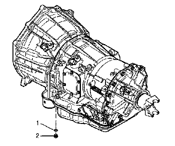 1. Remove the pressure tap plug (2) and O-ring (1) that is located on the bottom of the converter housing near the control main filter.