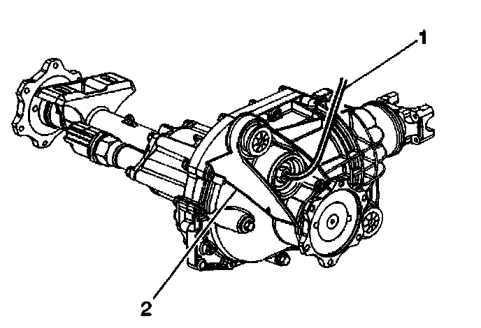 4. Connect the vent hose (1) to the differential carrier case assembly (2).