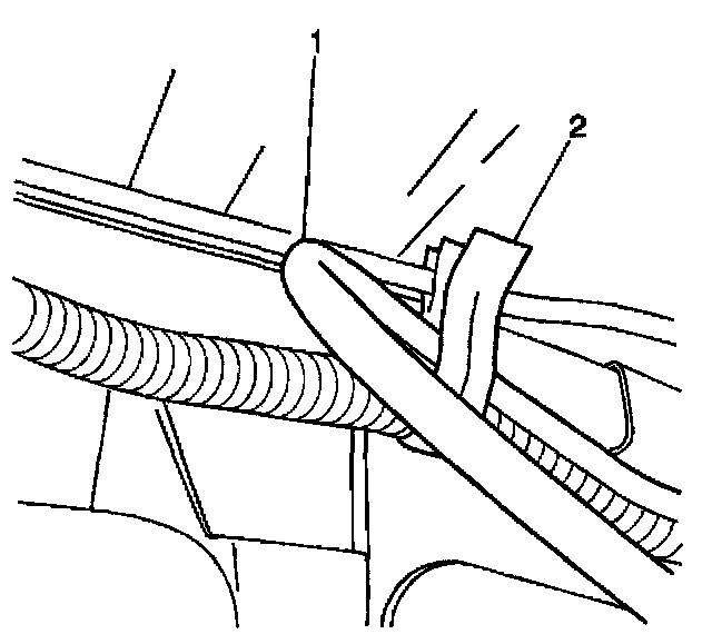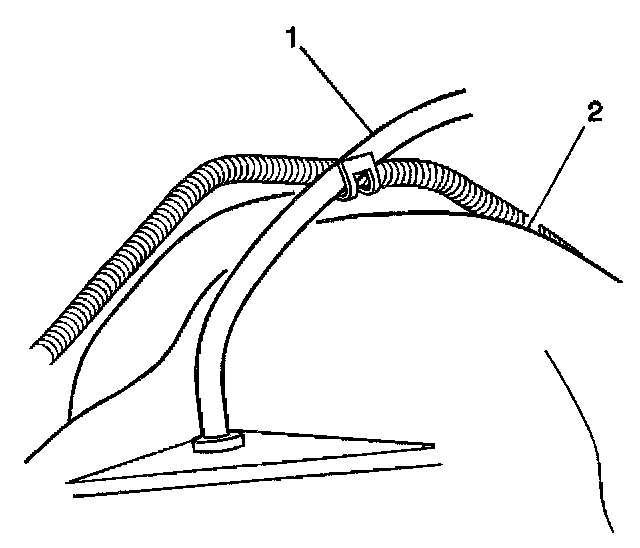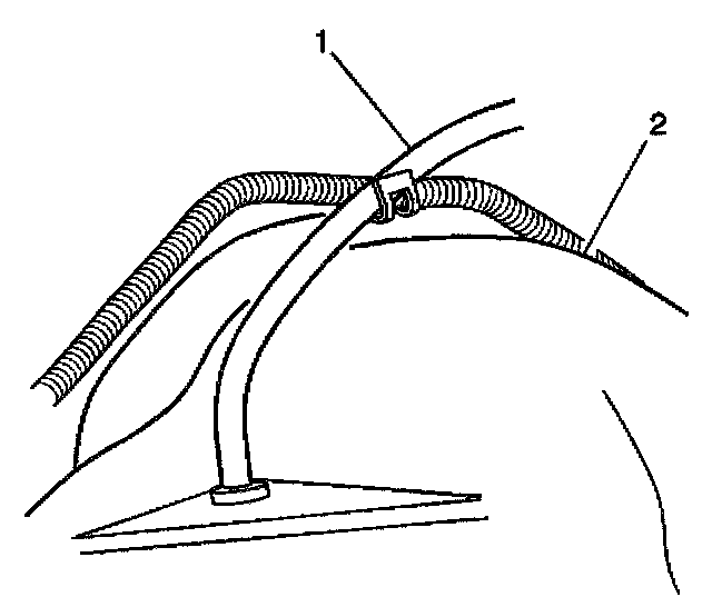 2. Install the vent hose (1) in the clip (2) on the frame.