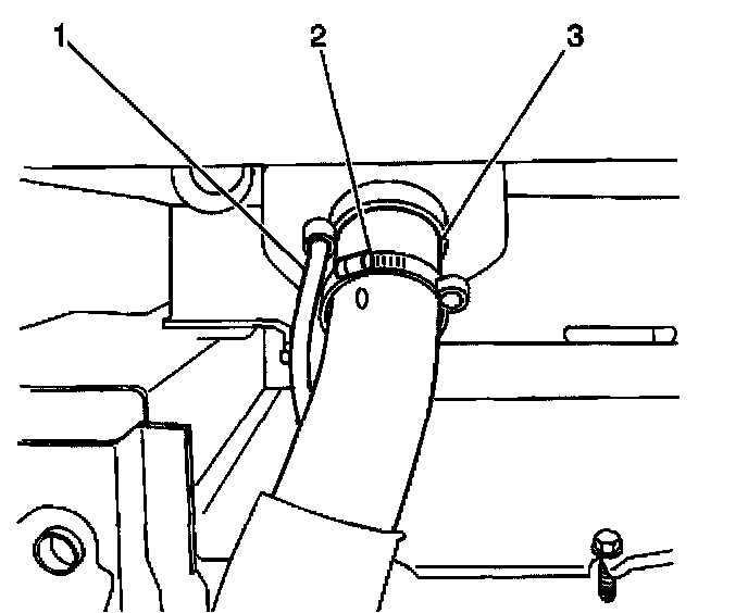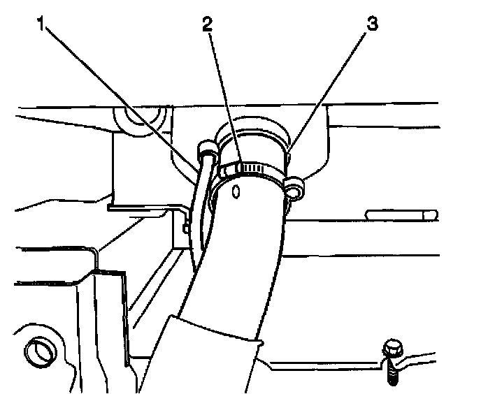 1. Install the vent hose (1) to the clamp (2) on the filler hose (3).